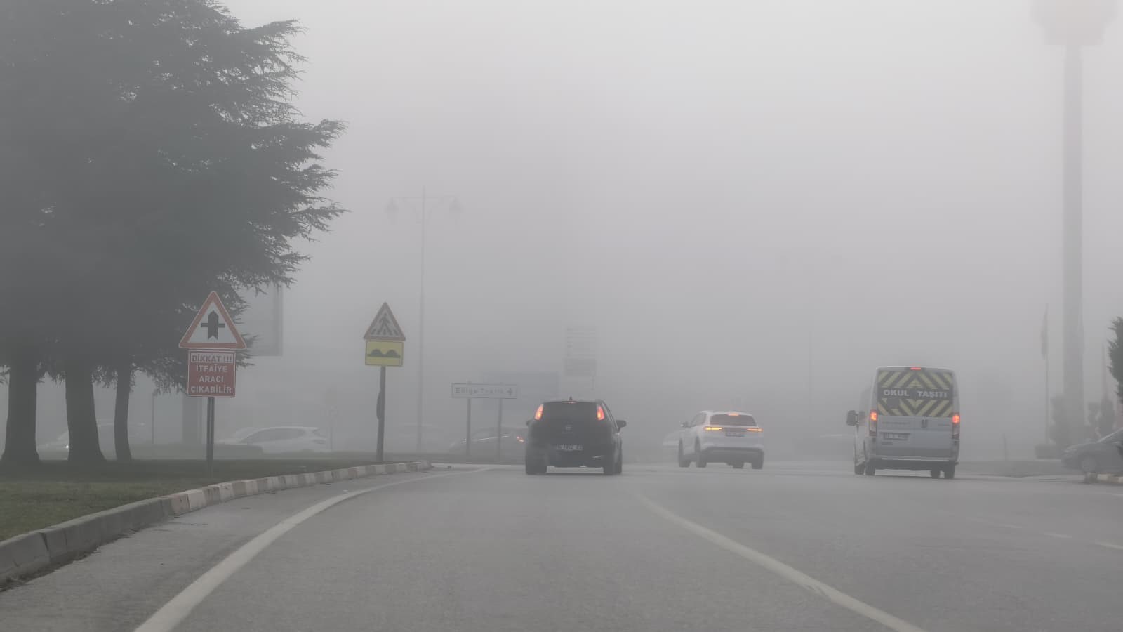 İnegöl ilçesinde sabahın erken saatlerinden itibaren etkili olan yoğun siste görüş mesafesi yer yer 10 metreye kadar düştü.