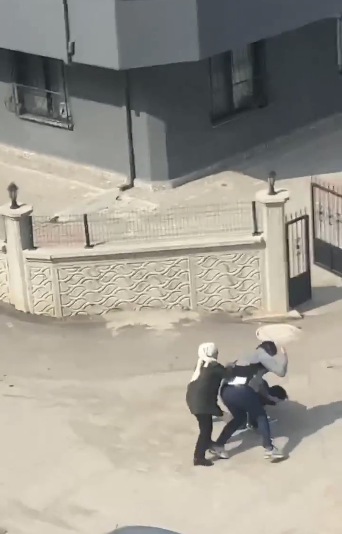 Sopalar, yumruklar ve terliklerin havada uçuştuğu kavga, çevredeki vatandaşların araya girmesiyle güçlükle son buldu. O anlar bir vatandaşın cep telefonu kamerasına saniye saniye yansıdı.