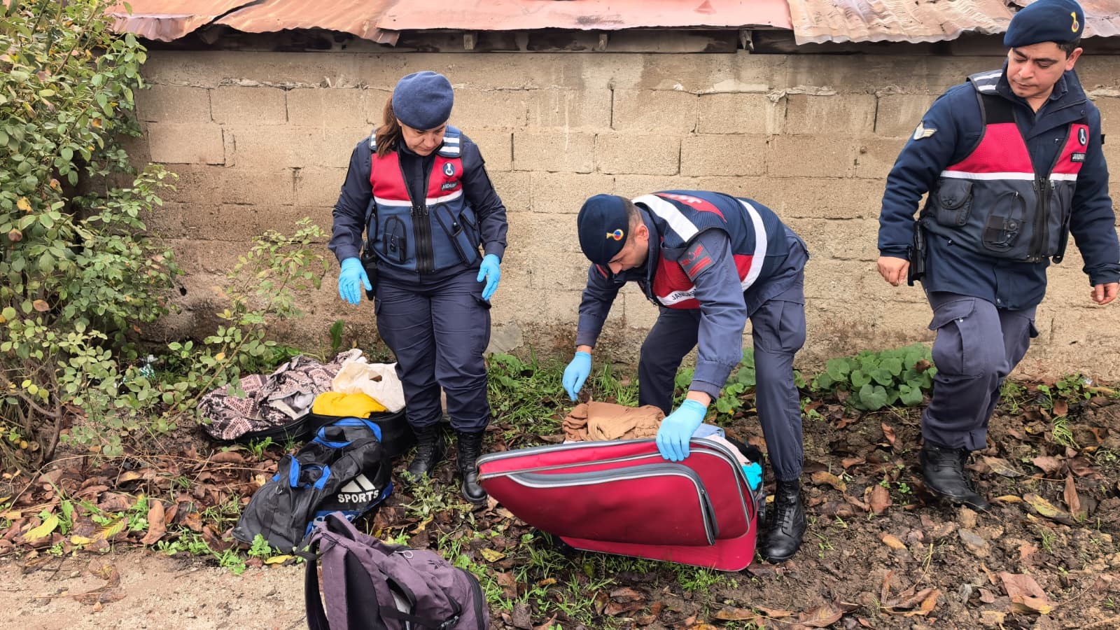 İhbar üzerine olay yerine jandarma ekipleri sevk edildi. Ekipler, görgü tanıklarının ifadelerini aldıktan sonra valizleri inceledi. Yapılan kontrolde valizlerin içinde kadınlara ait kıyafet ve ev eşyaları bulundu.