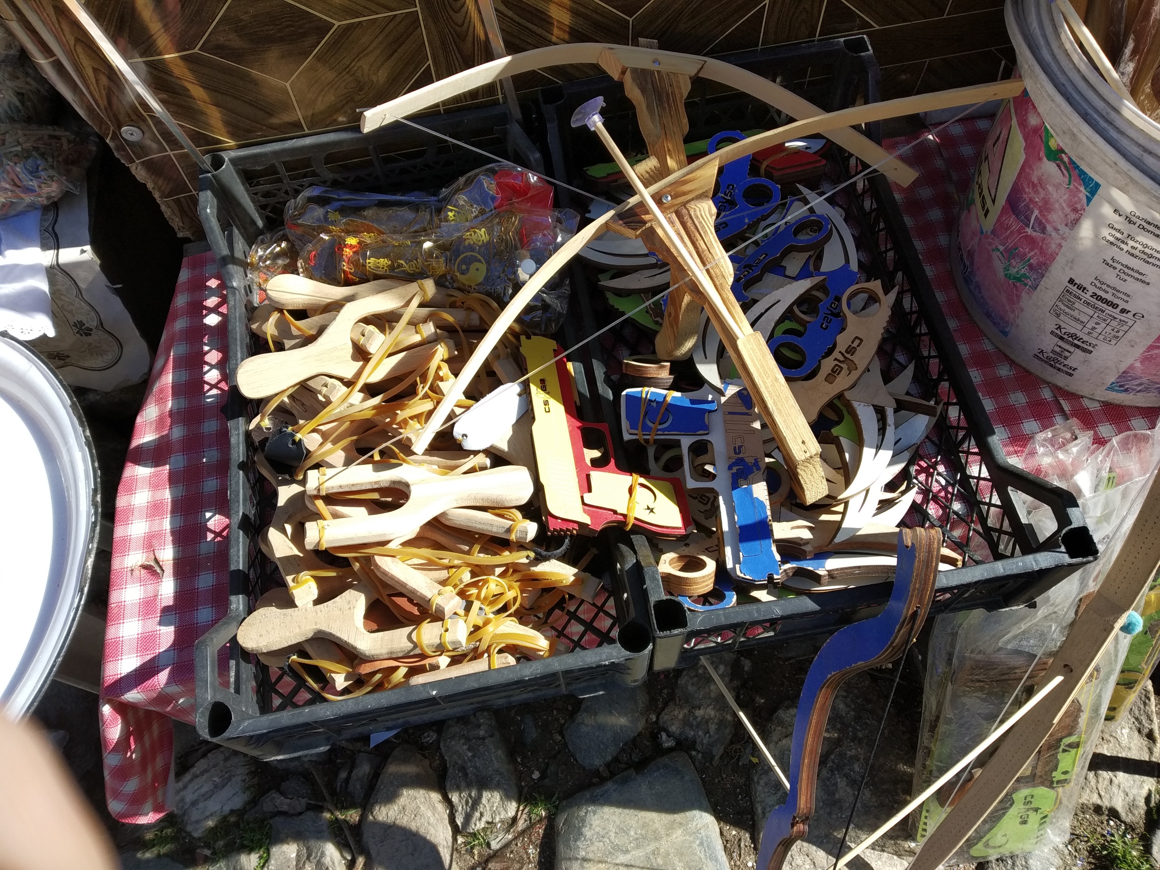 Tezgâhlarda şiddet çağrışımlı ürünler
