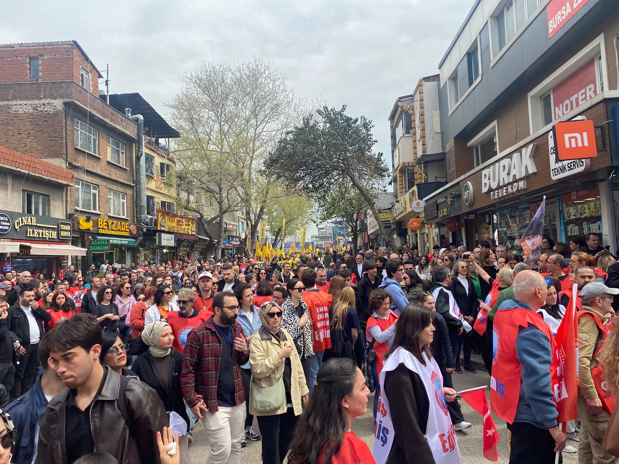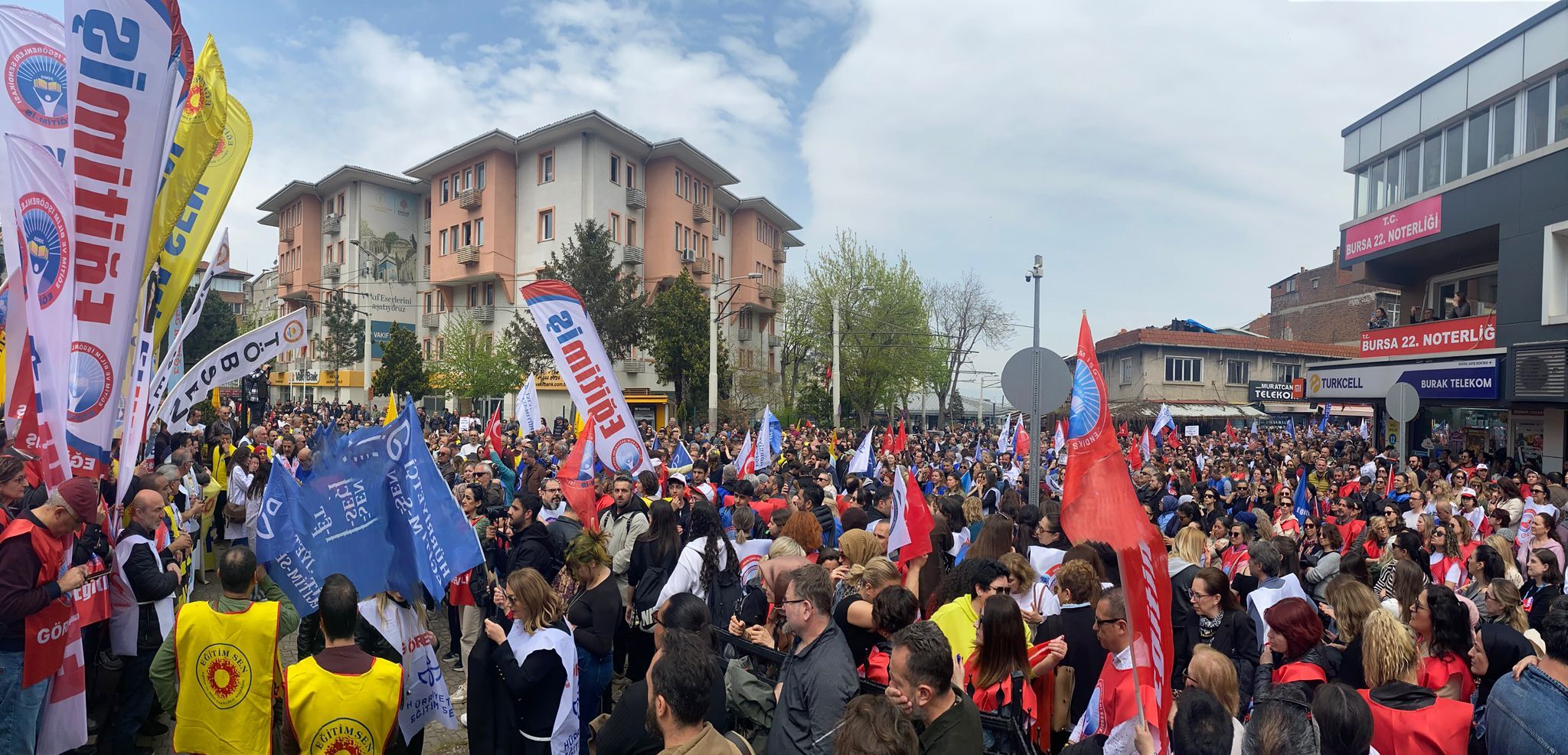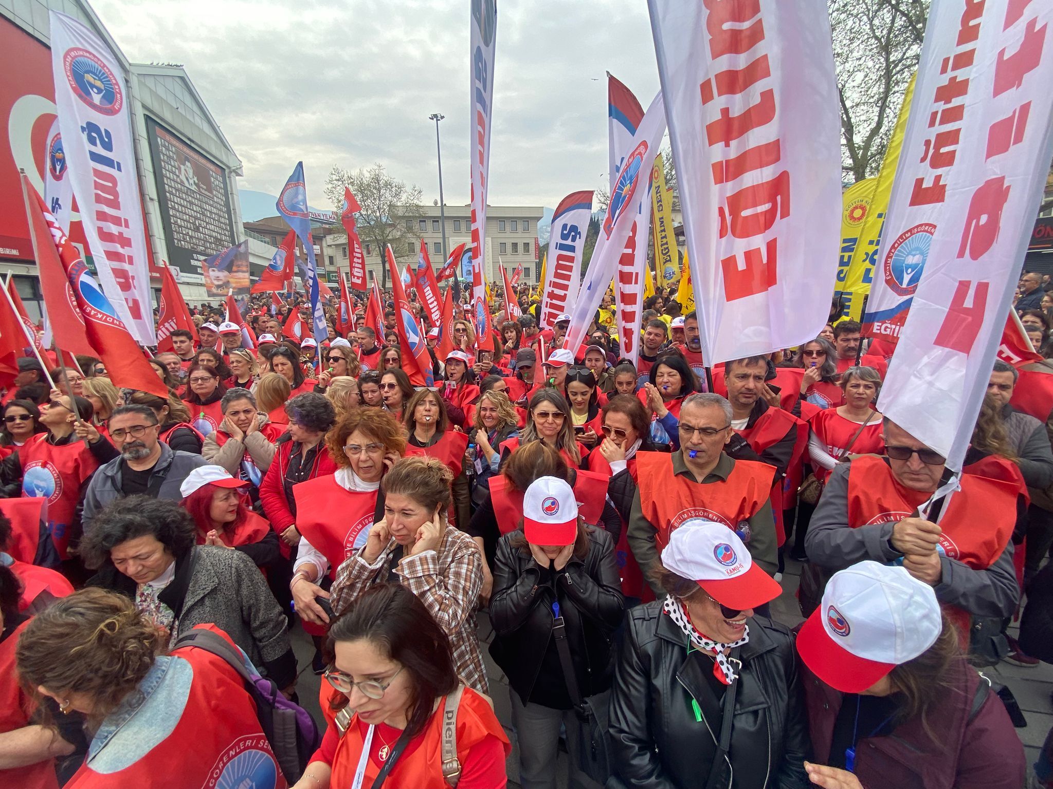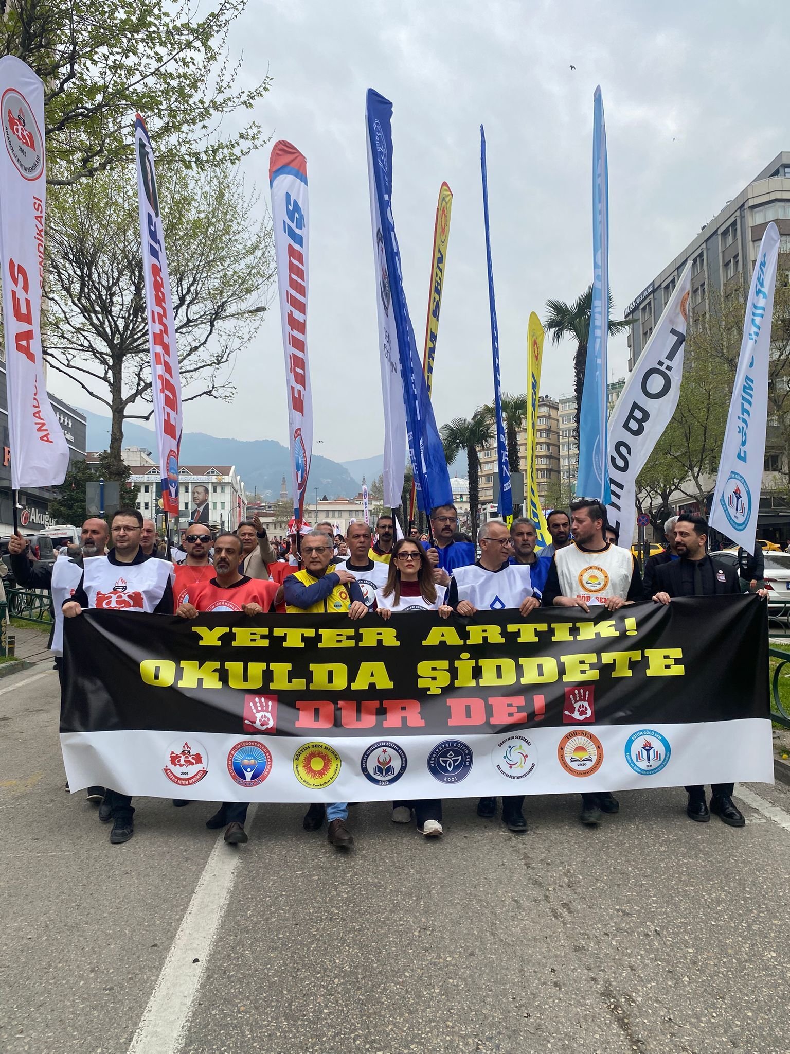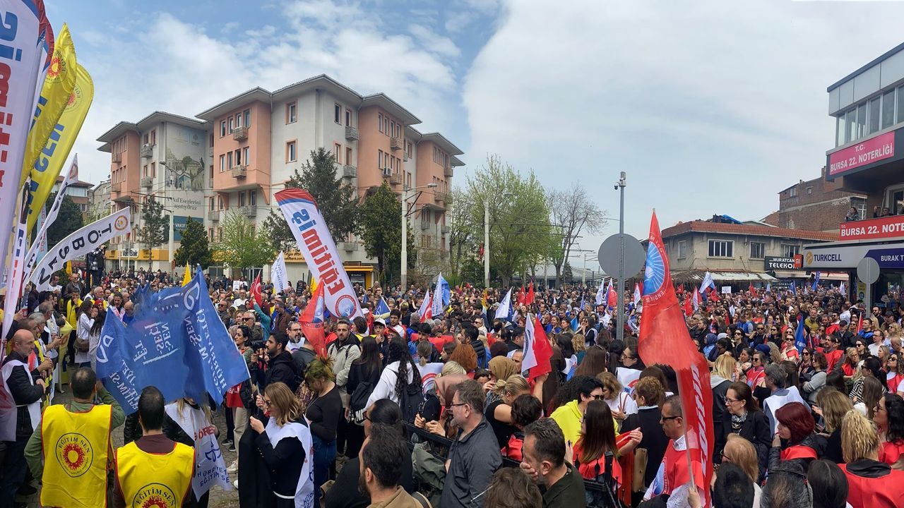 Bursa’da eğitim sendikalarının çağrısıyla binlerce öğretmen, Şehreküstü Meydanı’nda toplanarak Bursa İl Milli Eğitim Müdürlüğü önüne yürüdü. Uzun kortejde dikkat çeken görüntüler oluşurken, yürüyüş boyunca atılan sloganlarla eğitimde artan şiddete tepki gösterildi. Kortejin bir ucu İl Milli Eğitim Müdürlüğü’ne ulaşırken, diğer ucunun hâlâ meydanda olması katılımın büyüklüğünü ortaya koydu.