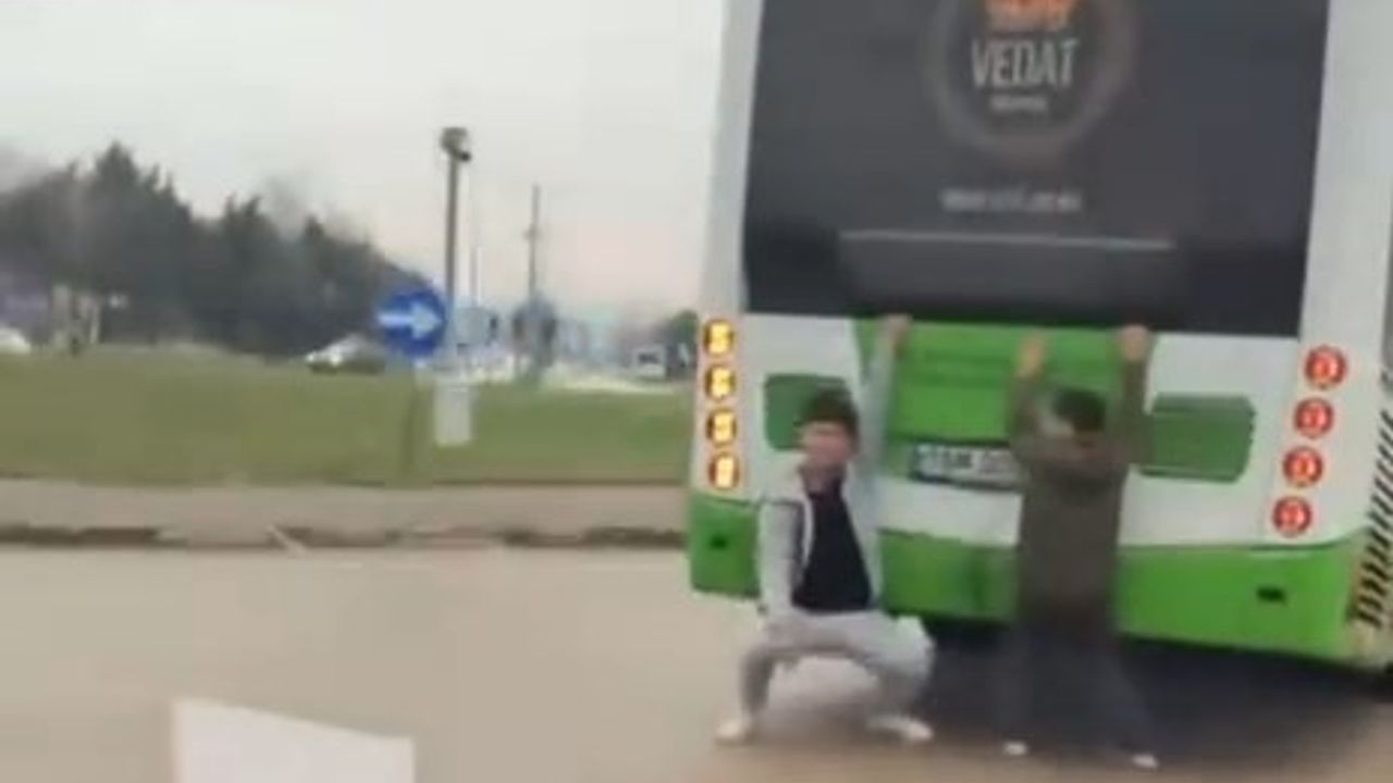 Olay, merkez Yıldırım ilçesi Millet Mahallesinde meydana geldi. Akıllarında oyun oynadıklarını düşünen 10-15 yaşlarındaki 2 çocuk, şehir içi ulaşımda kullanılan otobüsün arkasına tutunarak tehlikeli şekilde yolculuk yaptı. Canını hiçe sayan çocuklar, hem kendi hayatını hem de trafikteki diğer vatandaşların güvenliğini tehlikeye attı.
