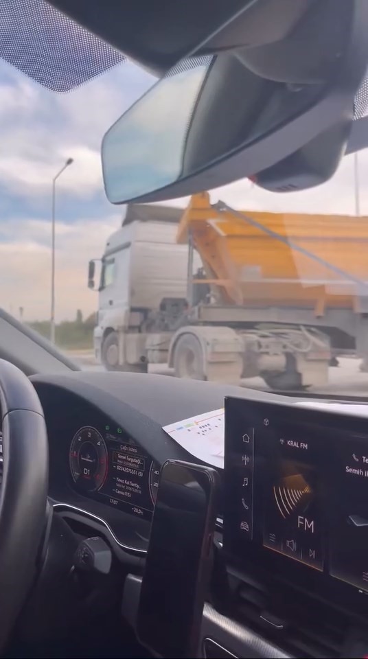 Yol ayrımından girmek için hareket eden otomobil ise, karşısında gördüğü kamyonu görünce neye uğradığını şaşırdı. Ters yönden gelen 16 BBJ 665 plakalı kamyon, herkesin canını hiçe sayması, 10 dakika veya 10 kilometre kaybetmek istememek için ’pes’ dedirten hareketi, saniye saniye cep telefonu kamerasına yansıdı.