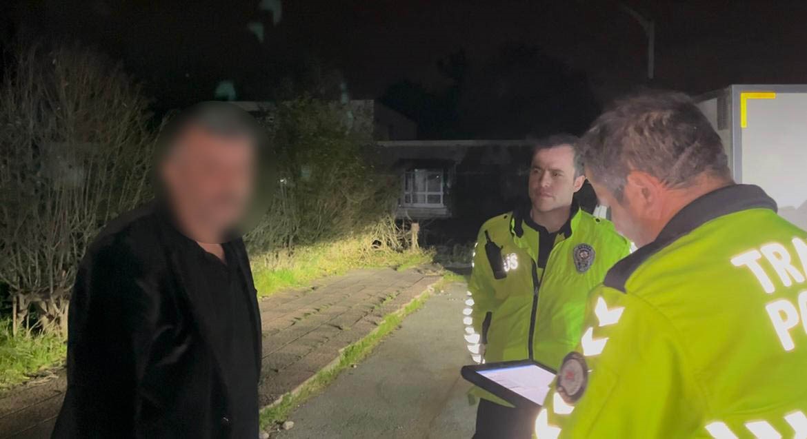 Otoparka kaçan kamyoneti gören polis ekibi, kamyonetin peşine düştü. Polisi karşısında alkolmetre ile gören sürücü 'çişim var' diyerek arkasını döndü ve tuvaletini yapmaya başladı. Uzun süre sürücüyü bekleyen polis memuru, ehliyetini ibraz etmesini istedi. Bunun üzerine sürücü, 'Ehliyet ve kimlik diğer araçta. Polis abi elinizi ayağınızı öpeyim. Siz bana dur demediniz. Bak, elini ayağını öpeyim' diyerek uzun süre dil döktü.