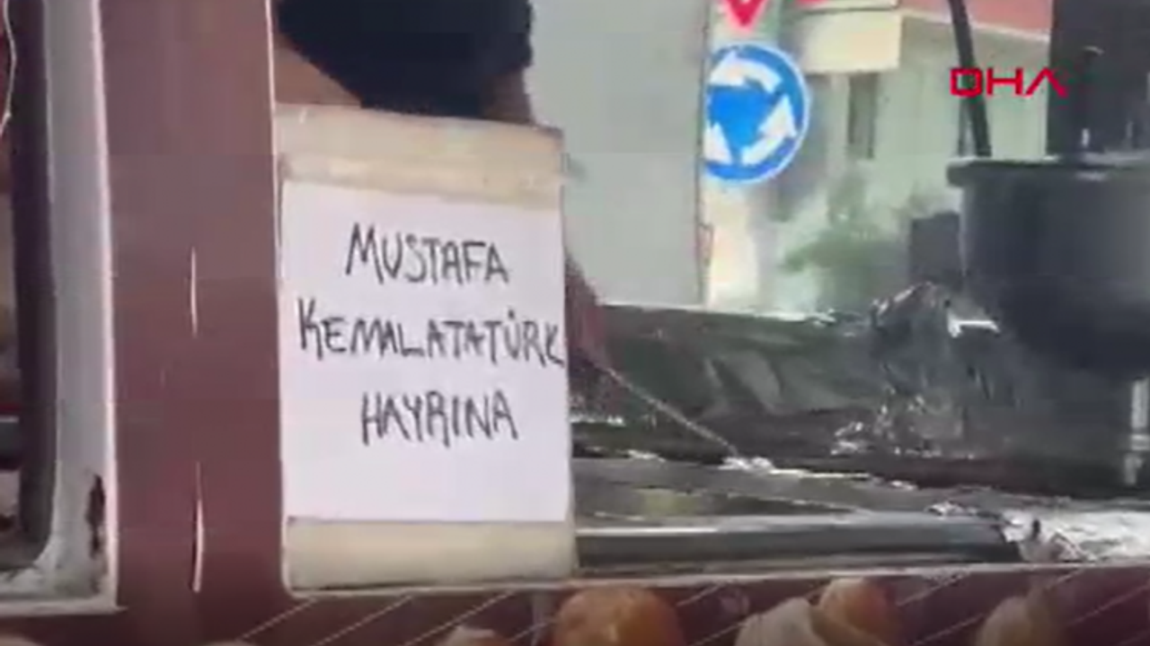Türkiye Cumhuriyeti'nin kurucusu Mustafa Kemal Atatürk, ebediyete irtihalinin 87'nci yılında törenlerle anılırken, İznik ilçesinde yaşayan bir hayırsever lokma dağıttı. Vatandaşlar, ilçe merkezindeki lokma aracının önünde sıraya girerken, 'Mustafa Kemal Atatürk hayrına' yazısı dikkat çekti.