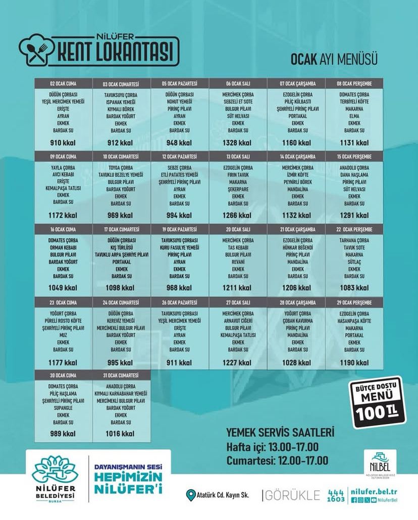 Öğrenciler hafta sonları şayet yalnızca Nilüfer Belediyesi’nin Görükle Kent Lokantası’nda yemek yerse aylık 1.600 TL bütçe ayırmak zorunda. Menü fiyatı 100 TL olan kent lokantası menüleri iki öğünden hesaplandığında, öğrencilerin kent lokantasına 16 defa gitmesi gerekiyor.
