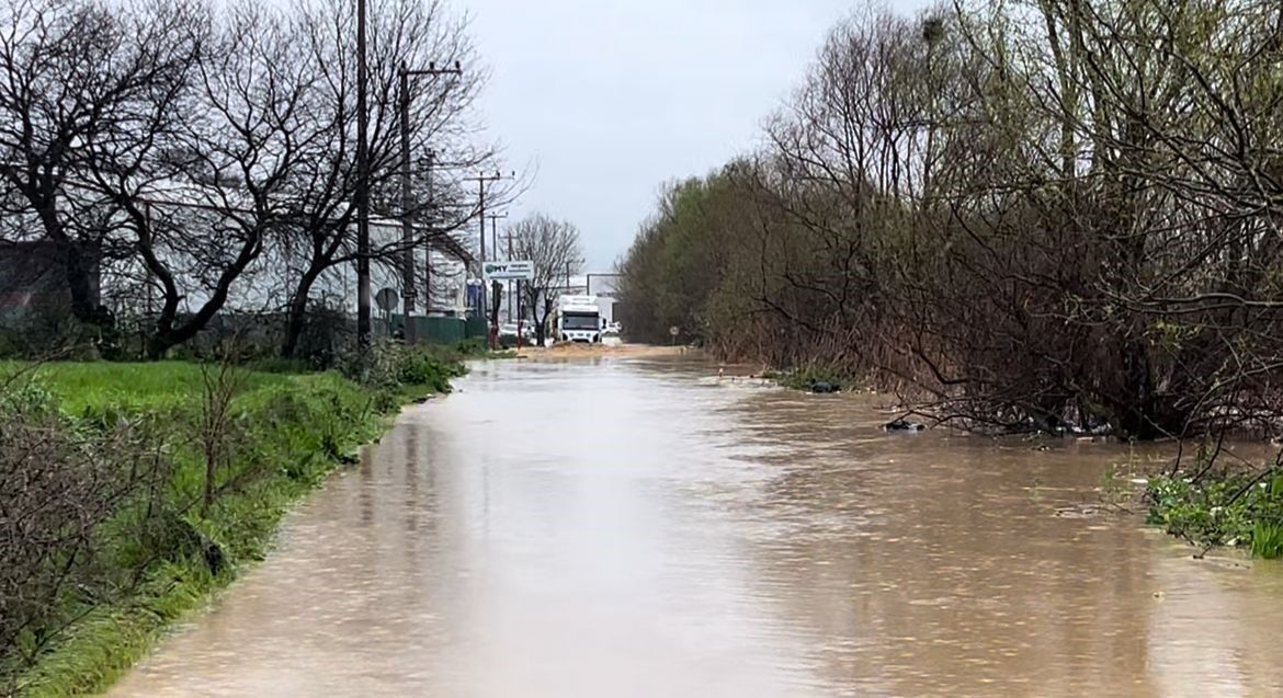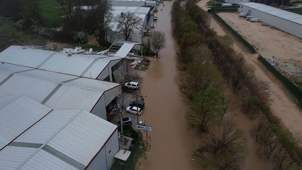 Yollar sular altında kalırken, fabrika bahçelerinde ise araçlar mahsur kaldı.