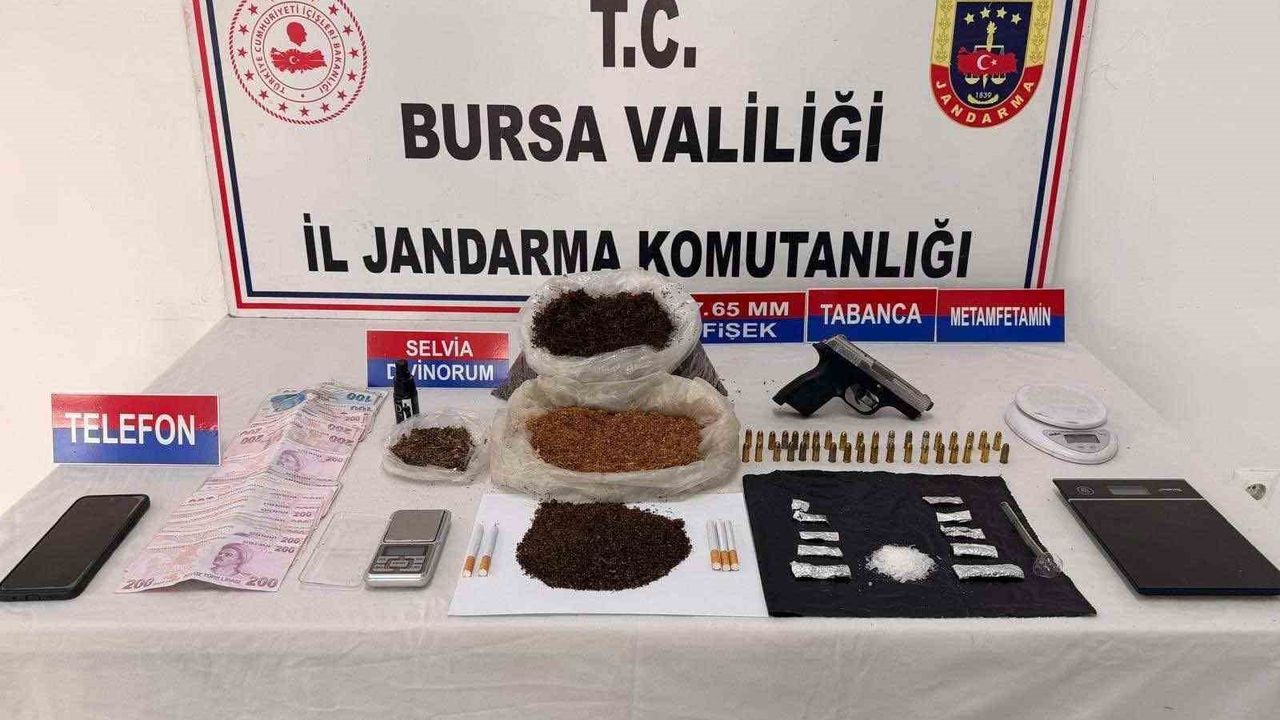 Edinilen bilgiye göre, Bursa İl Jandarma Komutanlığı ekiplerince 6 Ocak 2026 tarihinde gerçekleştirilen operasyonda, bir şahsın ikametinde arama yapıldı. Yapılan aramalarda, 1 kilo sentetik kannabinoid maddesi emdirilmiş A.M. maddesi, 18 gram metamfetamin, 30 gram Salvia Divinorum, 32 gram likit A.M. maddesi, 3 hassas terazi, 1 ruhsatsız tabanca, 37 adet 7.65 milimetre çapında fişek, 8 bin 300 TL nakit para ile 1 cep telefonu ele geçirildi. Operasyonda gözaltına alınan A.K.A. (50) hakkında adli işlem başlatıldı.