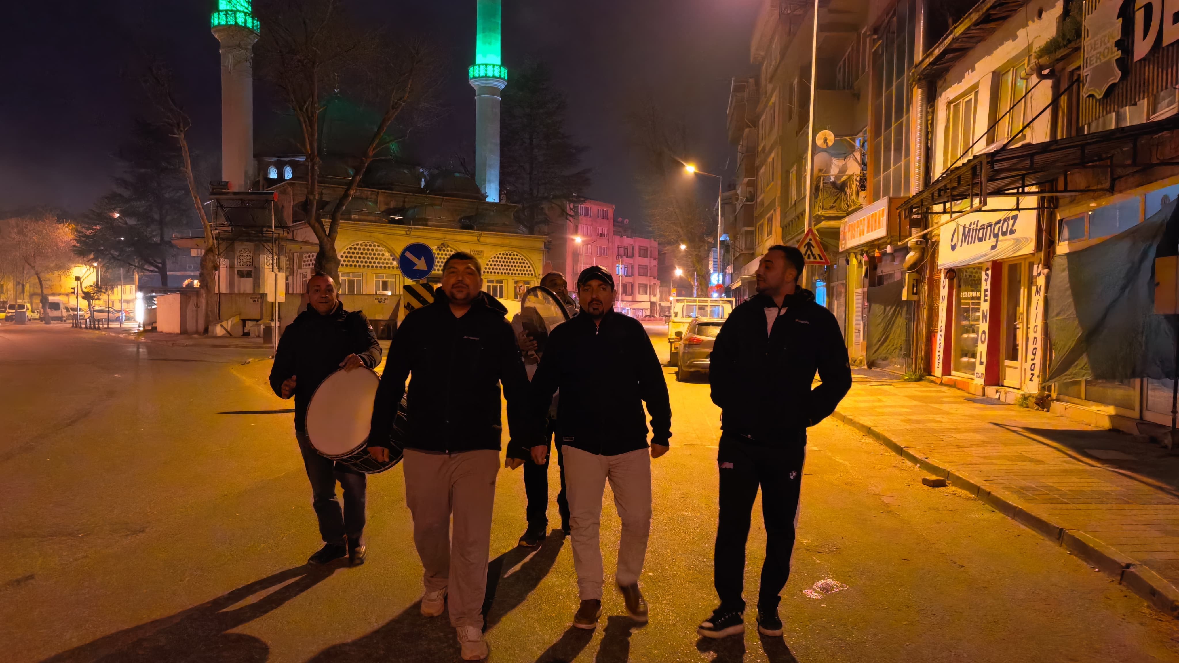 Davul ve defler eşliğinde Sinanbey Mahallesi sokaklarında gezen ilahi ekibi, özellikle sosyal medyada da ilgi gören Kabe'de Hacılar ilahisini seslendirdi. Sahur vaktinde okunan ilahiler, Ramazan ayının manevi ruhunu mahalleye taşıdı.