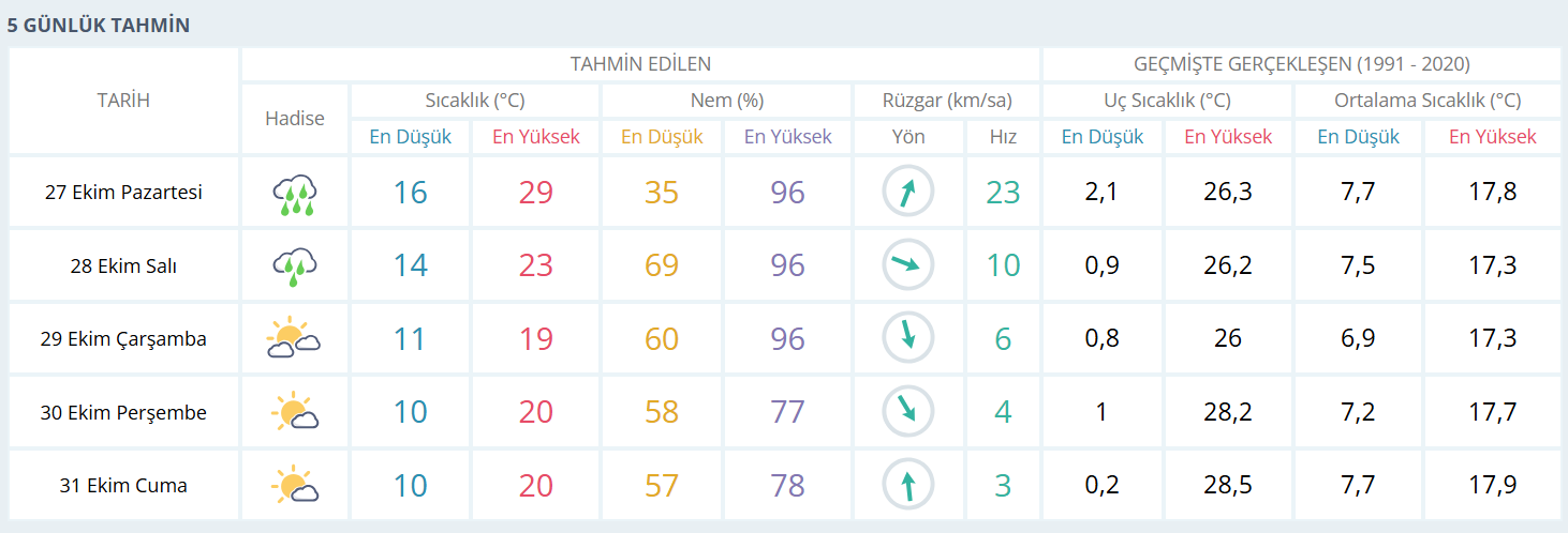 Meteoroloji yetkilileri, hafta başındaki yağışlı hava nedeniyle vatandaşların dikkatli ve tedbirli olmaları uyarısında bulundu. Hafta sonuna doğru ise kentte daha sakin, ılık ve güneşli bir hava hakim olacak.