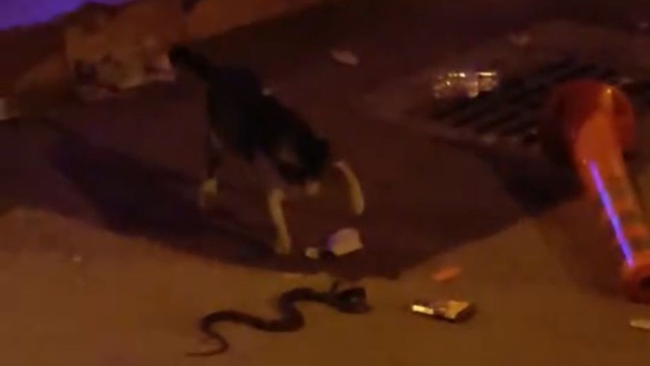 Doğal yaşamın şehir merkezinde dahi etkisini gösterdiği olayda, bir kediyle yılanın karşı karşıya geldiği anlar çevredeki vatandaşların dikkatini çekti.