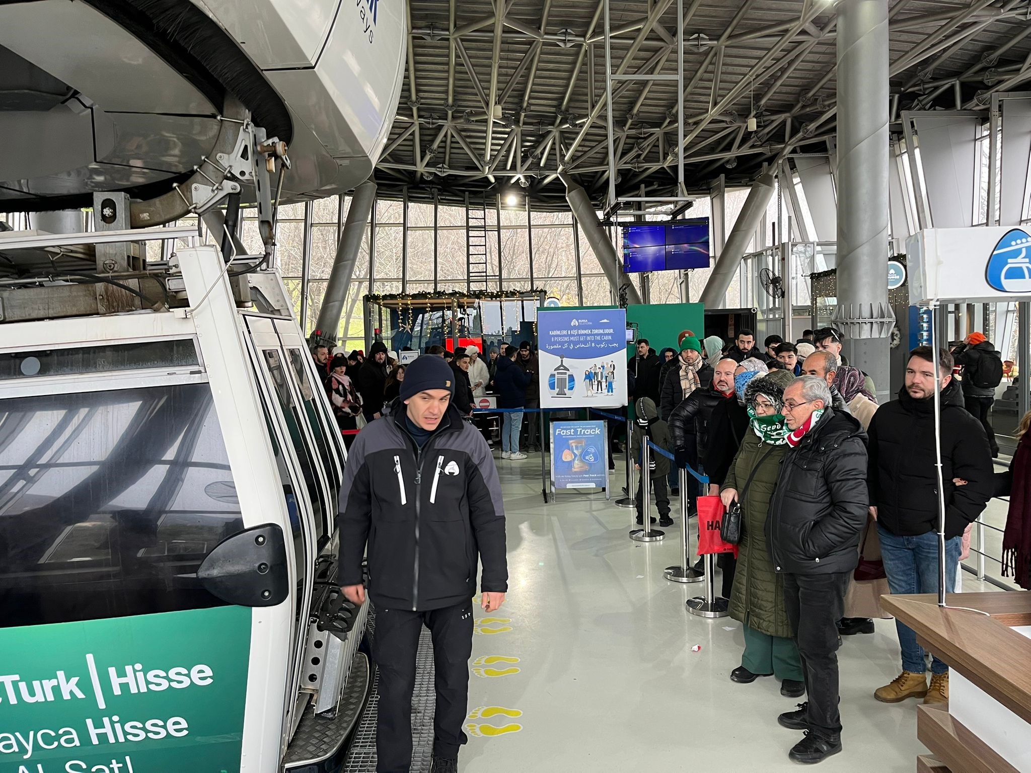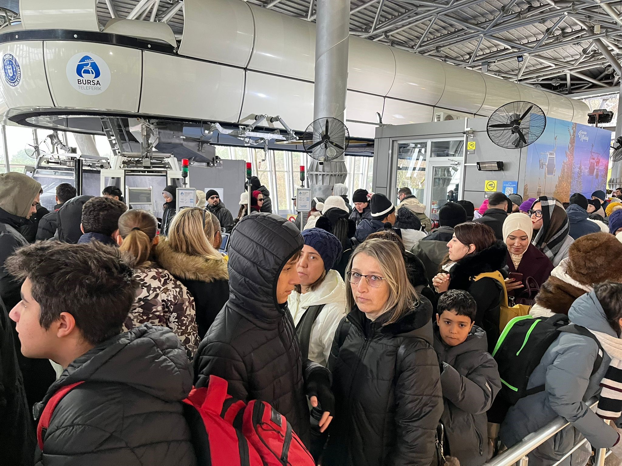 Sabahın ilk ışıklarıyla birlikte teleferik tesislerine gelen vatandaşlar uzun kuyruklar oluştururken, güvenlik gerekçesiyle içeri sınırlı sayıda yolcu alındı. Bu durum kuyrukların giderek uzamasına neden oldu.