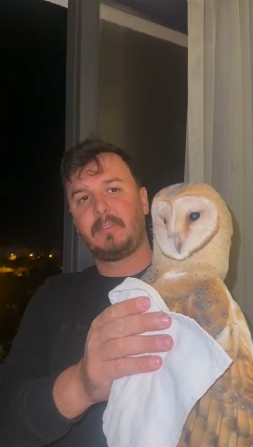 Gece saatlerinde evlerine giren baykuşu görünce büyük şaşkınlık yaşayan ev sakinleri, arkadaşları olan doğa ve yaban hayatı fotoğrafçısı Alper Tüydeş'e danışarak, zarar vermemek için baykuşu havluyla tutarak yakaladı. Daha sonra da geldiği balkondan dışarı saldı. Aile, o anları da cep telefonu kamerasıyla görüntüledi.