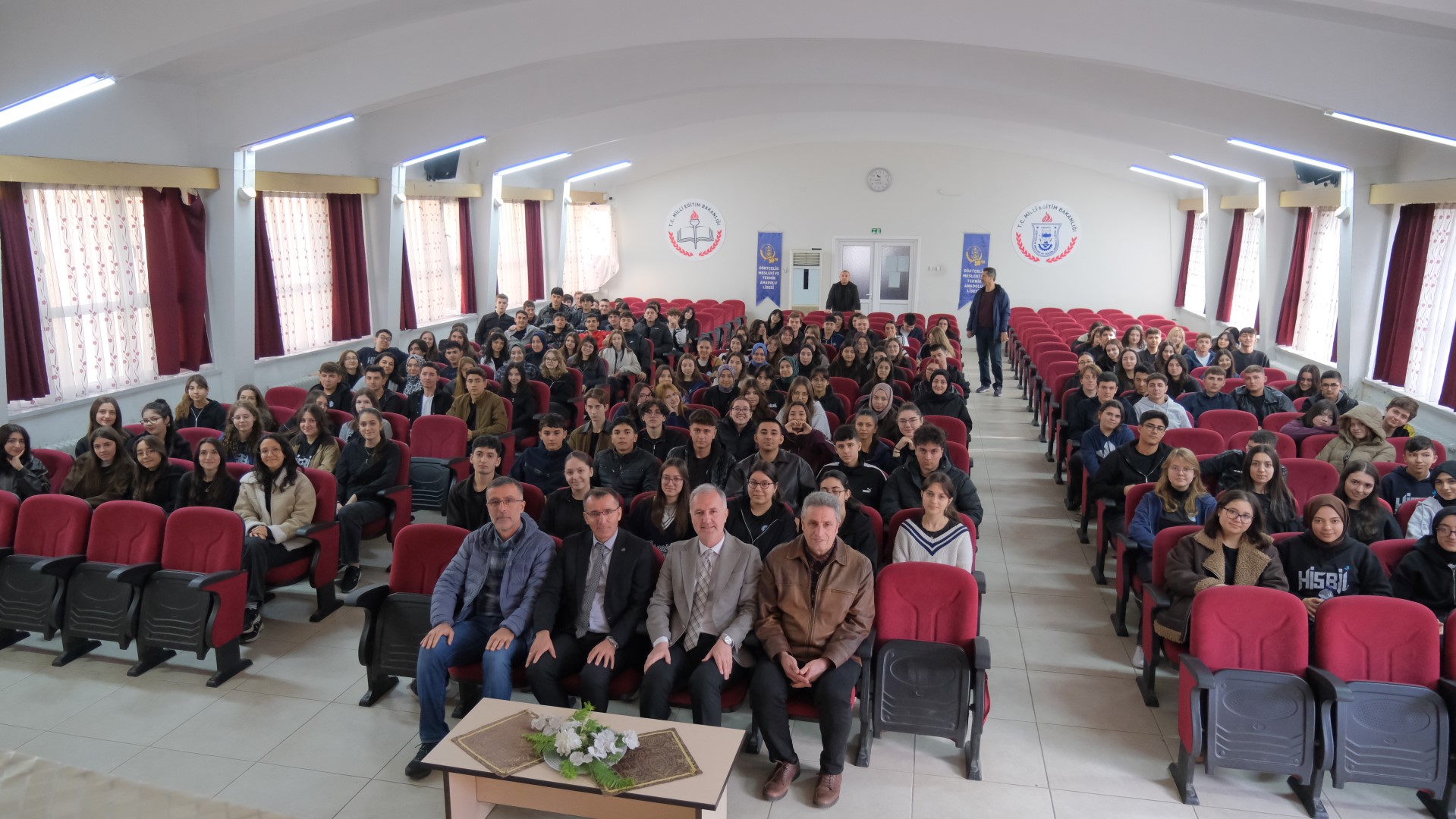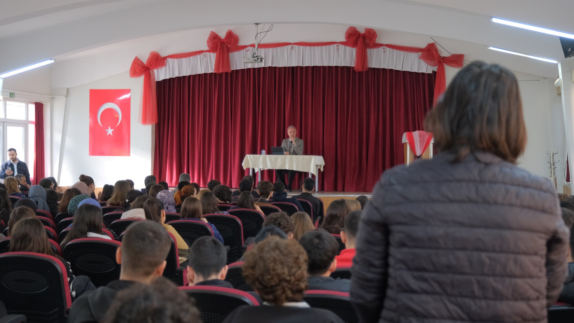 Başkan Taban öğrencilerle okulun çok amaçlı salonunda buluştu. Programda öğrencilerle birlikte okul idarecileri ve öğretmenler de yer aldı. Öğrencilerle yapılan buluşmada kısa bir selamlama konuşması yapan Okul Müdürü Siyasettin Alp, ziyareti ve öğrencilere verdiği değer için Başkan Alper Taban’a teşekkür etti. Başkan Alper Taban ise geçtiğimiz yıl Genç Bakış Buluşmalarını başlattıklarını hatırlatarak “Bu yıl da yine okullarımızın özellikle son sınıf öğrencileriyle buluşmalarımızı sürdürüyoruz. Bizlere kapılarını açan idarecilerimize teşekkür ediyorum. Bu buluşmaları biz neden yapıyoruz? Öğrencilerimiz, öğretmenlerimiz ve okul idarecilerimizi dinlemek için gerçekleştiriyoruz” dedi.