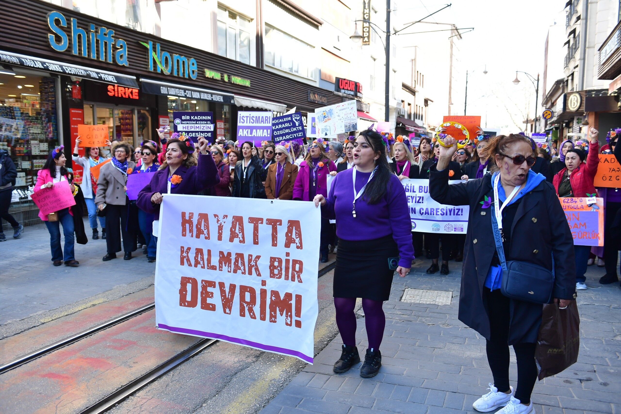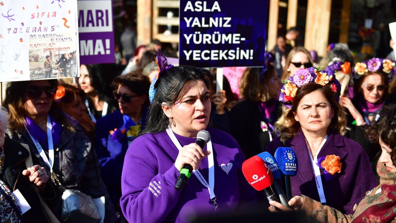 "Saklandığımız yerde değil, buluştuğumuz yerdeyiz. Birbirimizin çaresiyiz" sloganından hareketle Osmangazi Belediyesi, Büyükşehir Belediyesi, Nilüfer Belediyesi ve kent konseylerinin kadın meclisleri öncülüğündeki 8 Mart Dünya Kadınlar Günü yürüyüşü, yoğun bir katılım ile organize edildi. Cumhuriyet Caddesi'nden başlayan yürüyüşe katılan kadınlar, Hanlar Bölgesi'ne kadar alkışlar ve ıslıklar eşliğinde ilerledi. Kadınlar, "Dünya yerinden oynar, kadınlar özgür olsa", "Susmuyoruz, korkmuyoruz, itaat etmiyoruz" sloganlarıyla tepkilerini dile getirirken, haklarının savunucusu olacaklarını hep birlikte ifade etti.