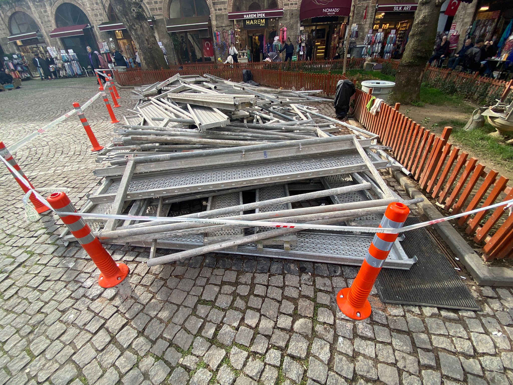 Ancak masaların kaldırılmasının ardından avluya yerleştirilen turuncu plastik dubaların (delinatörler) tarihi dokuya tamamen yabancı olduğunu dile getiren Yelseli, uygulamanın estetik açıdan ciddi soru işaretleri doğurduğunu söyledi.