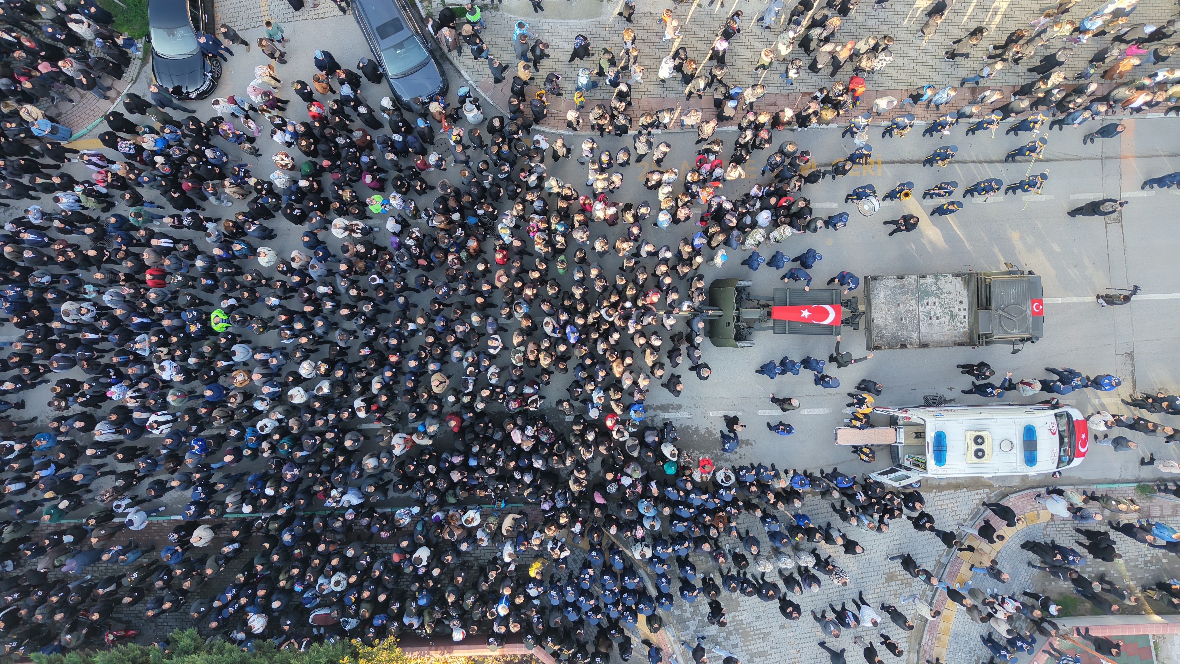 Namazın ardından şehit binbaşının cenazesi top arabasına konularak Yenişehir Şehitliği’nde dualar eşliğinde toprağa verildi.