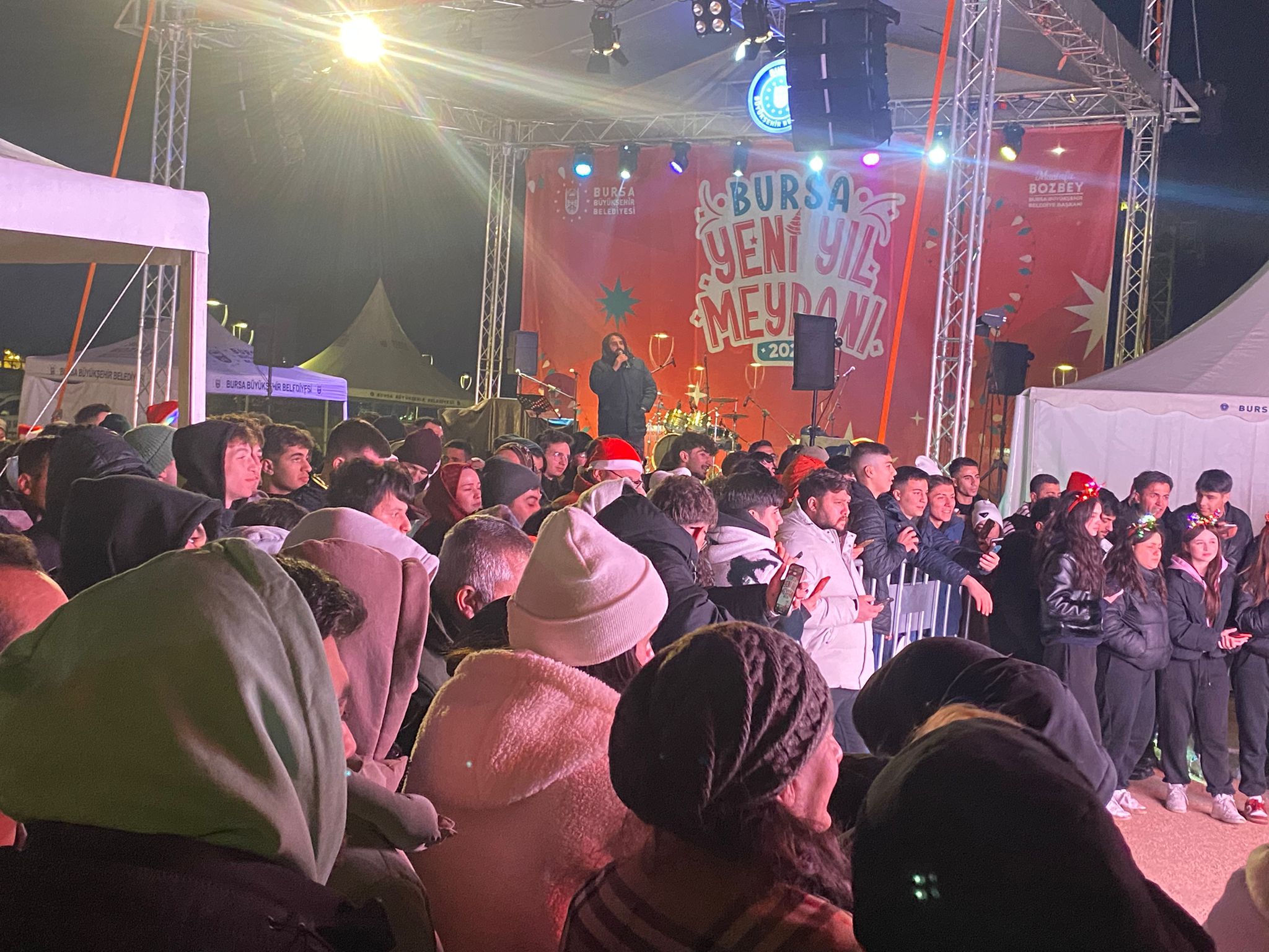 Soğuk havaya rağmen meydanı dolduran Bursalılar, kurulan odun ateşleri etrafında ısınarak yılbaşı coşkusunu yaşadı. Vatandaşlar, müzik ve etkinlikler eşliğinde 2026’yı birlikte karşılamaya hazırlanıyor.