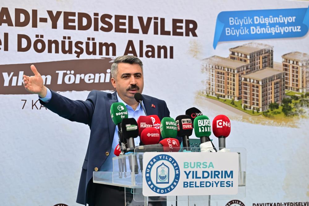 Davutkadı-Yediselviler Kentsel Dönüşüm Projesi 2. Etap Yıkım Töreni’ne; Yıldırım Belediye Başkanı Oktay Yılmaz başta olmak üzere, Yıldırım Kaymakamı Metin Esen, AK Parti Yıldırım İlçe Başkanı İrfan Akkaya, İlçe Milli Eğitim Müdürü Mustafa Sevinç, Yediselviler Mahalle Muhtarı Salih Solakoğulları, hak sahipleri ve vatandaşlar katıldı. Yıkım töreninde yaptığı konuşmada; Yıldırım’da depreme dayanıksız yapı stoğunu dönüştürmek, modern ve güvenli yaşam alanları inşa etmek için çalıştıklarını vurgulayan Belediye Başkanı Oktay Yılmaz; "Kentsel dönüşümü yalnızca teknik bir mesele olarak değil; geleceğimize karşı taşıdığımız büyük bir sorumluluk olarak görüyoruz. Bu anlayışla, ilçemizin farklı bölgelerinde hayata geçirdiğimiz projelerle bu dönem toplam 30 bin konutun yenilenmesini hedefliyoruz" ifadelerini kullandı.