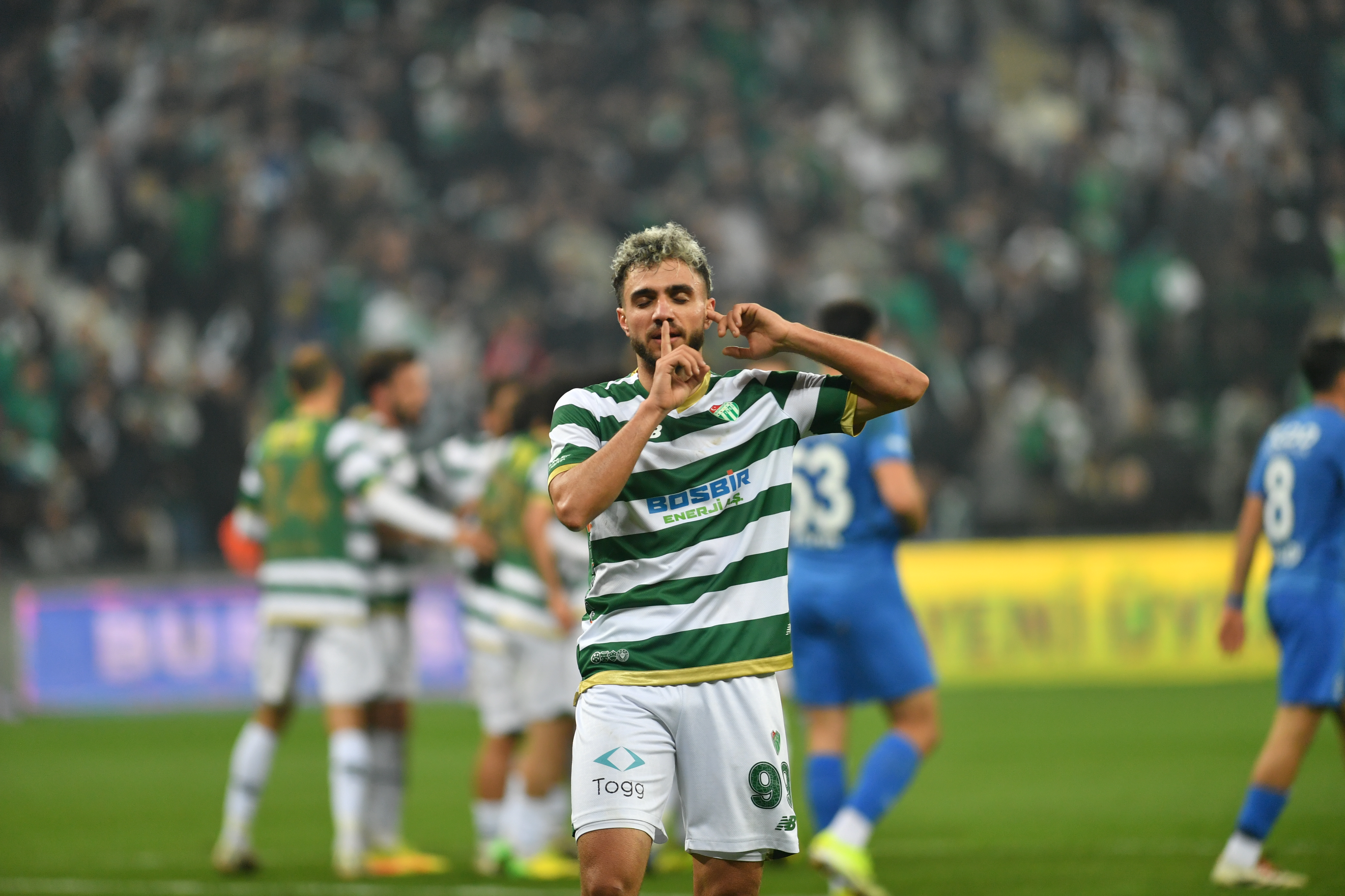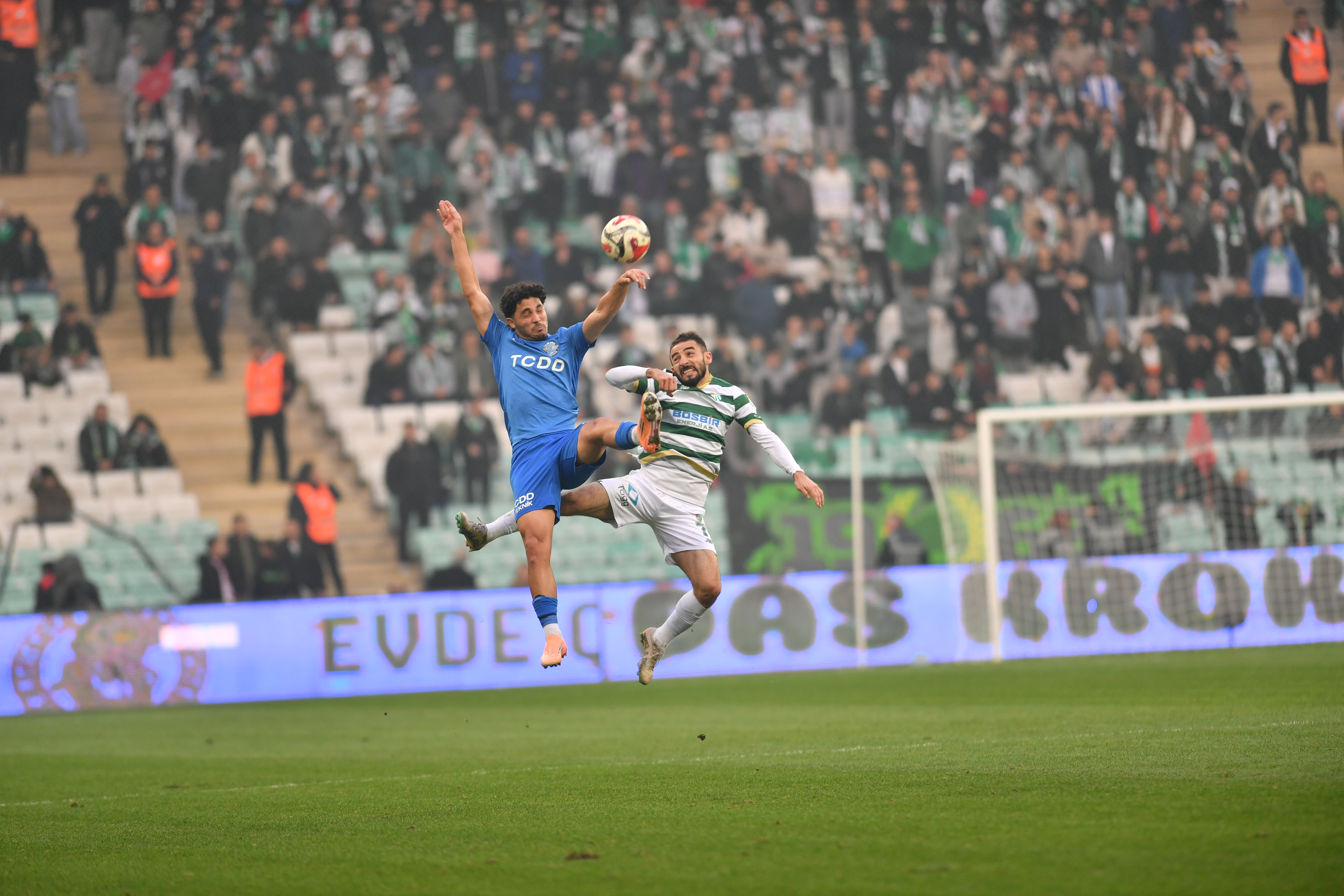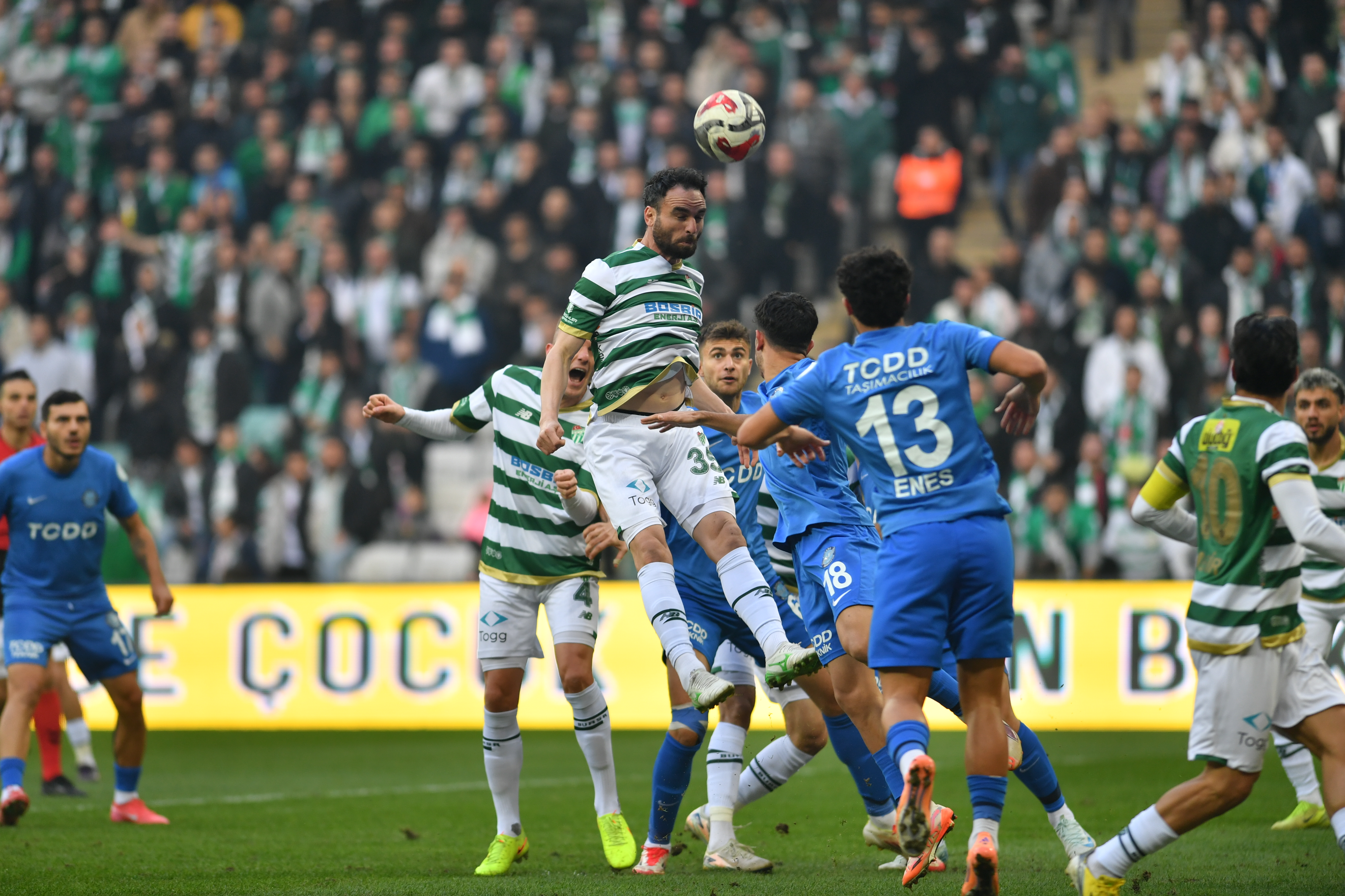 Hafta içi oynanmasına rağmen 30 bin 340 Bursasporlu taraftar tribünleri doldurdu. Yeşil beyazlılar, 90 dakika boyunca takımlarına büyük destek vererek galibiyette önemli rol oynadı.