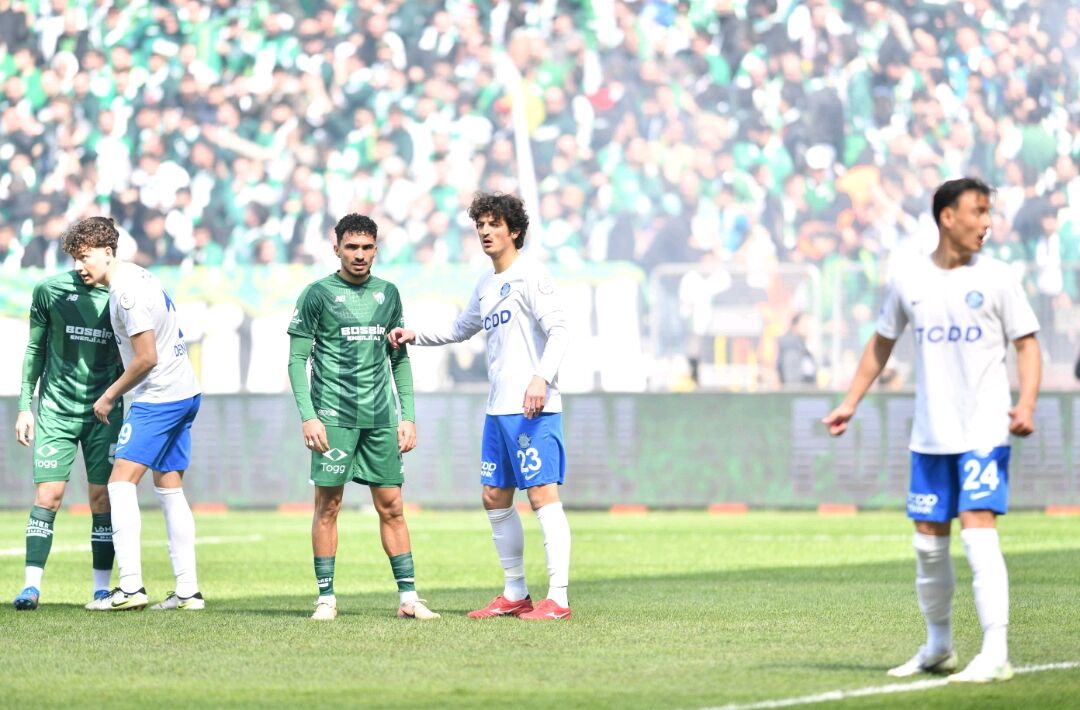 10' Bursaspor'da İlhan Depe'nin sağ kanattan yaptığı orta en son Emir Kaan Gültekin'in önünde kaldı. Bu futbolcunun çaprazdan vurduğu şutu kaleci Ali Talha kornere çeldi.