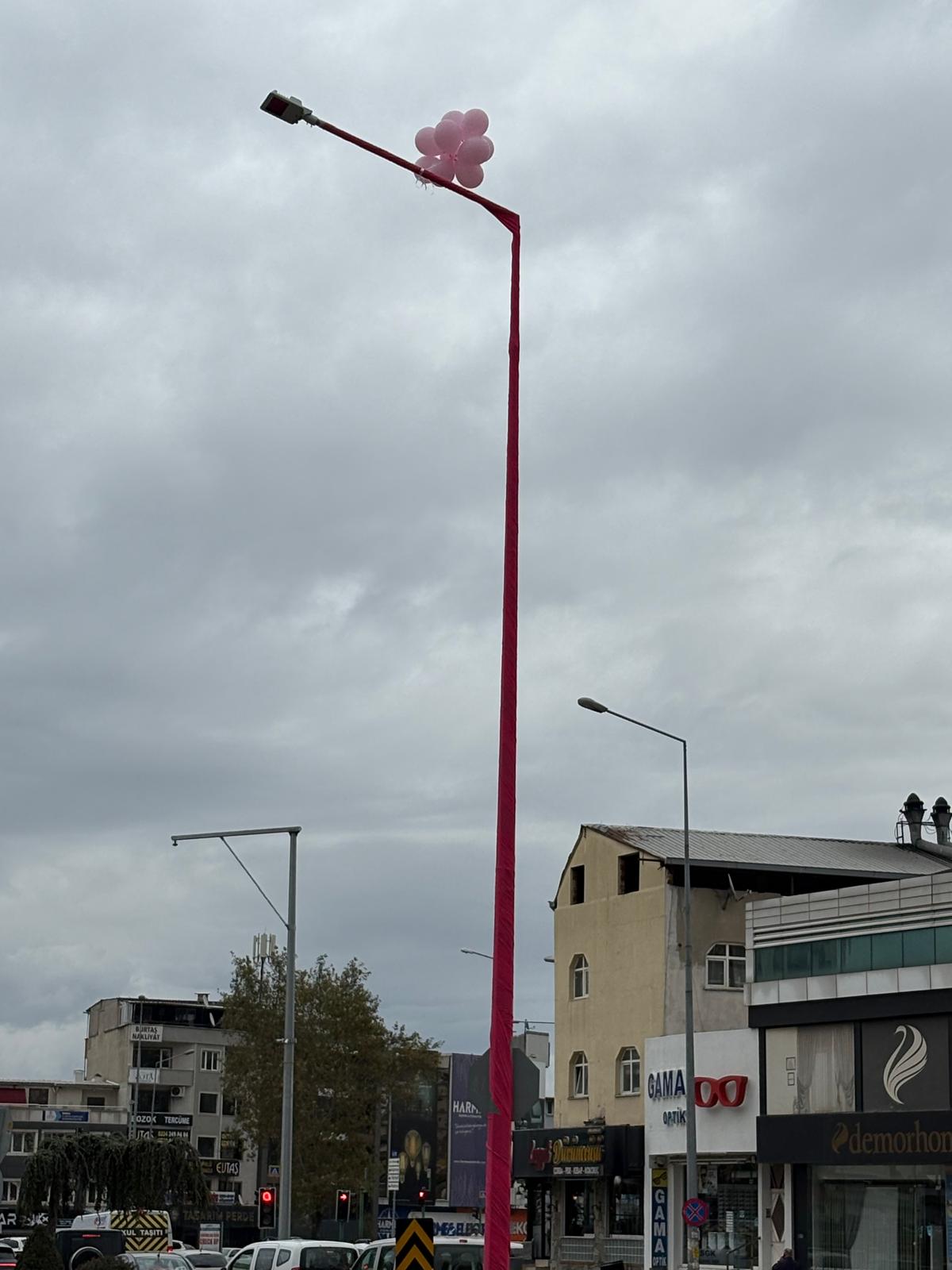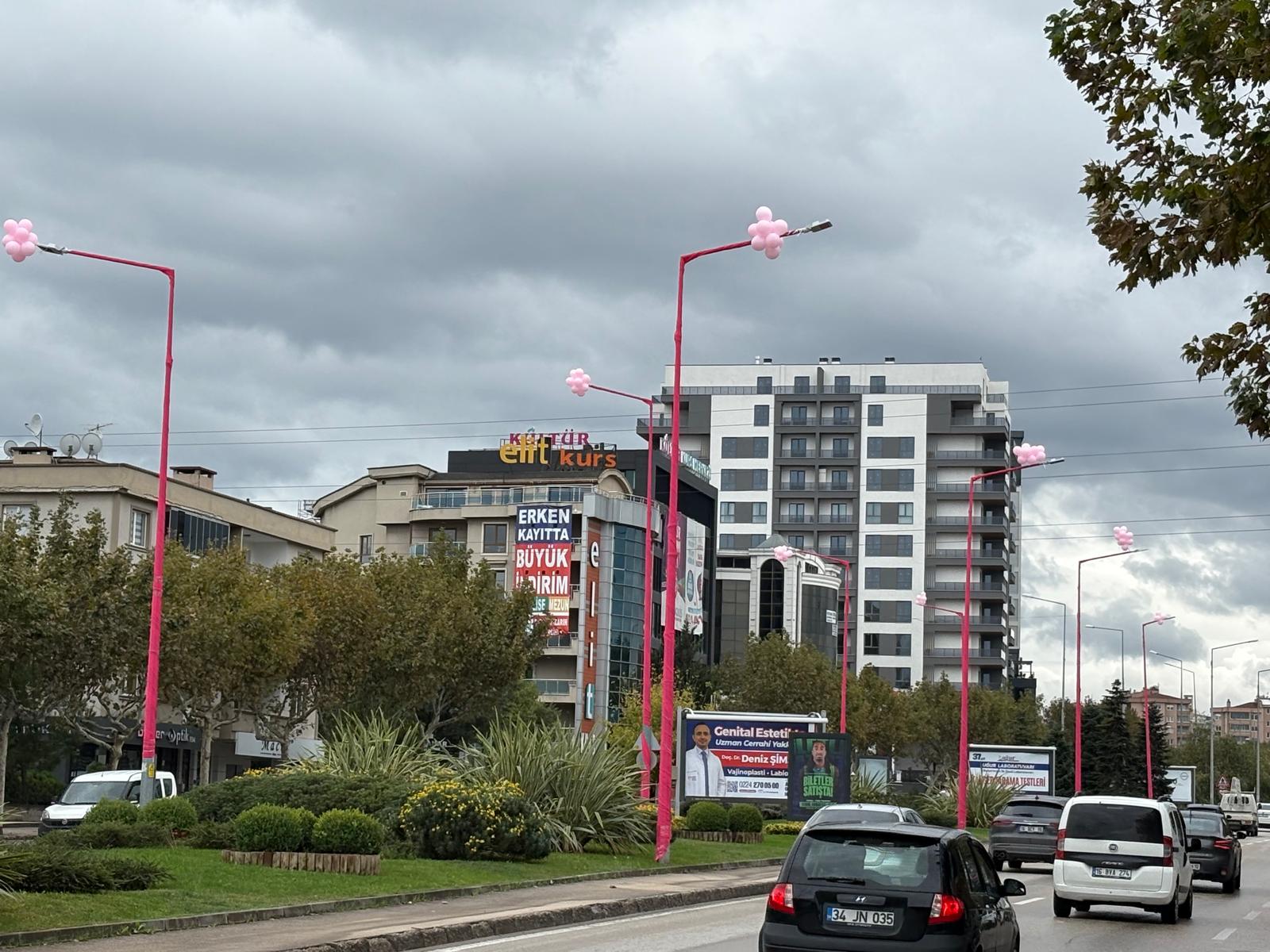 Kentin en işlek noktalarından biri olan Fatih Sultan Mehmet Bulvarı’nda yer alan direkler UEDAŞ tarafından pembe kumaşlarla kaplanırken, direk uçlarına yerleştirilen pembe balonlar vatandaşların ilgisini çekti.