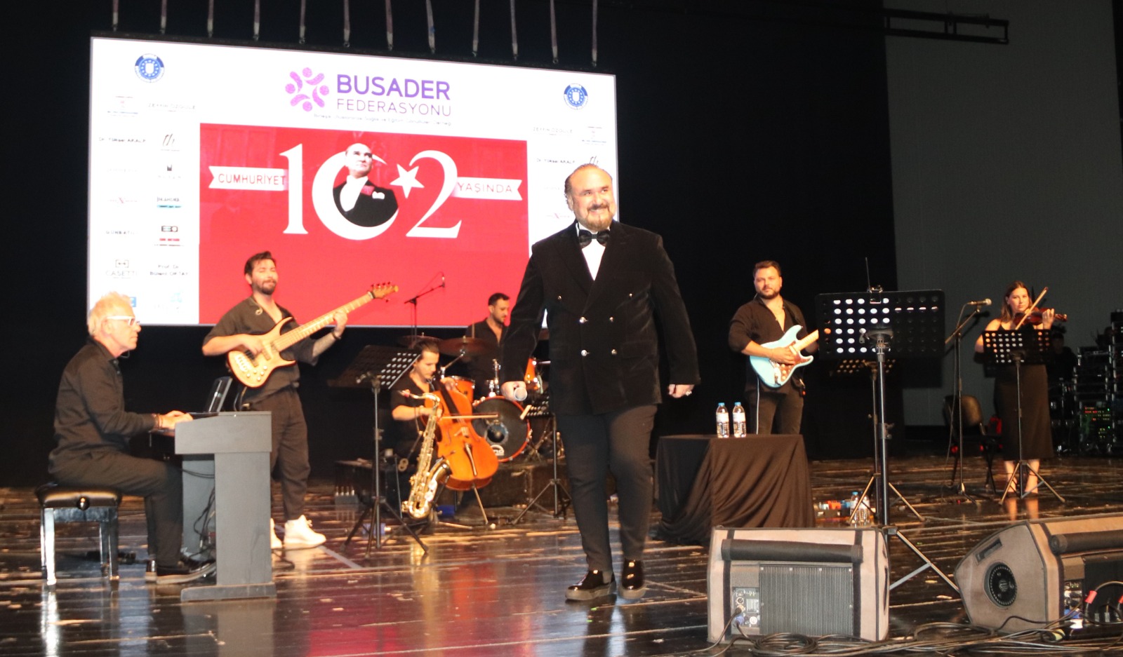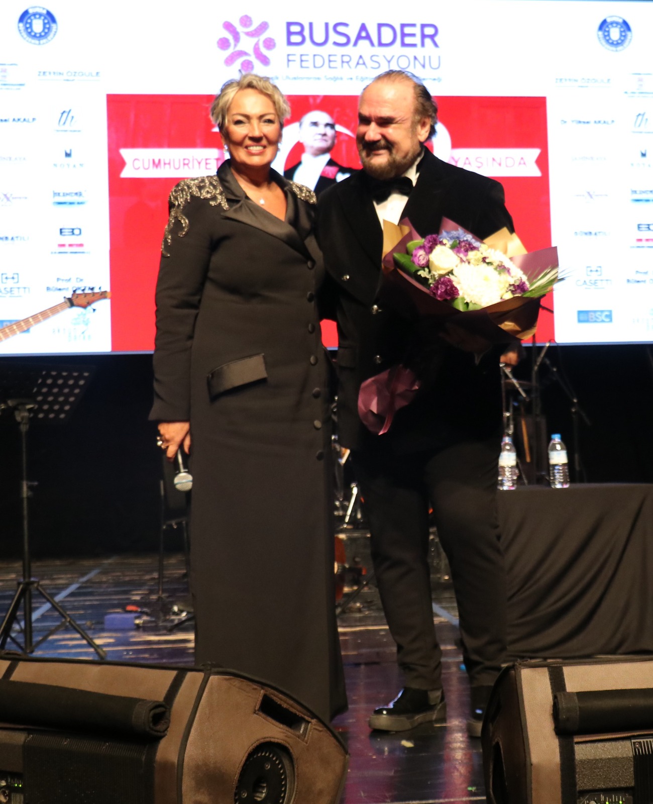 Plaket töreninin ardından Hakan Aysev, Türk ve dünya müziklerinin en güzel örneklerini seslendirdiği konseri ile katılımcılara Cumhuriyet coşkusunu yaşattı. Gecenin finalinde BUSADER Federasyonu Başkanı Zerrin Özgüle, Hakan Aysev'e çiçek takdiminde bulundu. BUSADER'e bağlı derneklerin başkanları sahneye çıkarak Hakan Aysev ve davetliler ile birlikte 'Memleketim' şarkısı ve İzmir Marşına ellerindeki Türk Bayrakları eşliğinde Cumhuriyet'in 102. Yaşını kutladı ve gecenin coşkusuna ortak oldu.