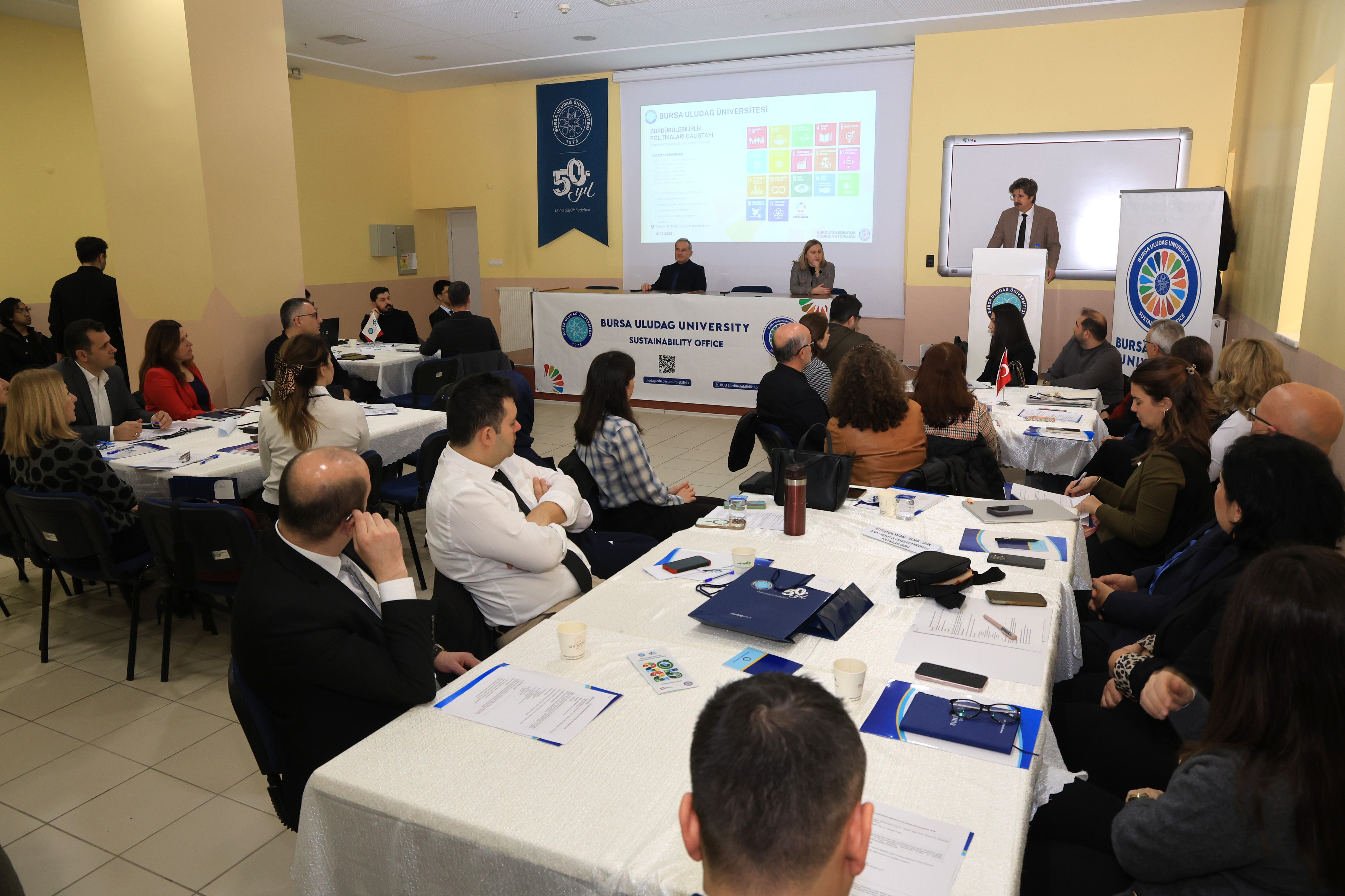 Açılış konuşmasını gerçekleştiren BUÜ Rektörü Prof. Dr. Ferudun Yılmaz, üniversitenin Araştırma Üniversitesi vizyonu ile sürdürülebilirlik hedeflerinin birbirini tamamlayan unsurlar olduğunu vurguladı. Yılmaz, sürdürülebilirliğin sadece nicel bir sıralama göstergesi değil, gelecek nesillere daha nitelikli bir yaşam alanı bırakma sorumluluğu olduğunu ifade etti. Üniversitenin uluslararası sıralamalardaki yükseliş ivmesine dikkat çeken Rektör Yılmaz, yeni hizmet binalarında da sürdürülebilirlik kriterlerinin öncelendiğini belirtti. Çalıştaya olan yoğun katılımın üniversitenin kurumsal kapasitesinin bir yansıması olduğunu dile getiren Yılmaz, bu tür kolektif çabaların kampüsü bir "yaşam dünyası" olarak daha değerli kıldığını sözlerine ekledi.