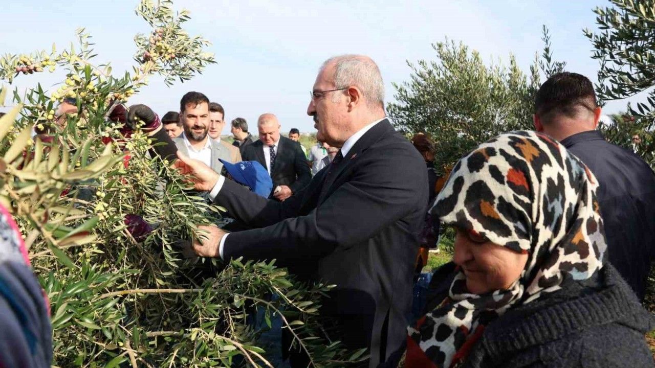 Hasat alanındaki çalışmaları inceleyen Çanakkale Valisi Doç. Dr. Ömer Toraman, bölgedeki zeytin üretimi, zeytinyağı işleme süreçleri, zeytin çeşitleri, verim durumu, hasat yöntemleri ve sıkım teknolojilerine ilişkin yetkililerden bilgi aldı.