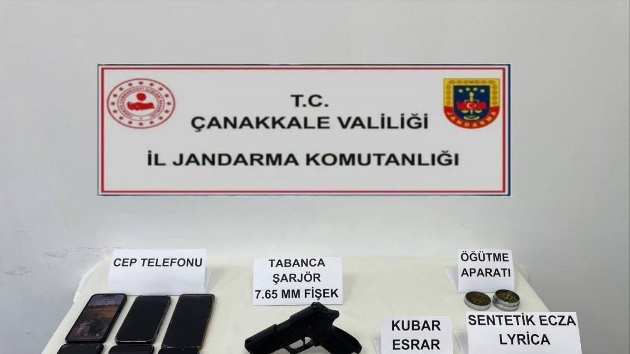 Çanakkale Cumhuriyet Başsavcılığı koordinesinde, İl Jandarma Komutanlığı ekiplerince uyuşturucu ve uyarıcı madde ile mücadele çerçevesinde 5-17 Kasım tarihleri arasında il merkezi ve ilçelerde, 17 şüpheliye ait 11 adrese operasyon gerçekleştirildi. Yapılan aramalarda 36 gram kubar esrar, 35 gram sentetik kannabinoid hammadde, 17 gram sentetik kannabinoid, 10 gram skunk, 10 gram kenevir tohumu, 10 adet sentetik ecza, 2 adet ruhsatsız 9 milimetre tabanca, ruhsatsız 7.65 milimetre tabanca, 65 adet 9 milimetre ve 15 adet 7.65 milimetre tabanca fişeği, uyuşturucu öğütme aparatı, 3 adet uyuşturucu kullanma aparatı (payp), 29 adet uyuşturucu kullanma aparatı (kova), 6 adet cep telefonu, 3 bin 200 TL suç geliri para ele geçirildi. Operasyonlarda gözaltına alınan 17 şüpheliden 1’i çıkarıldığı mahkemece tutuklanarak cezaevine sevk edildi.