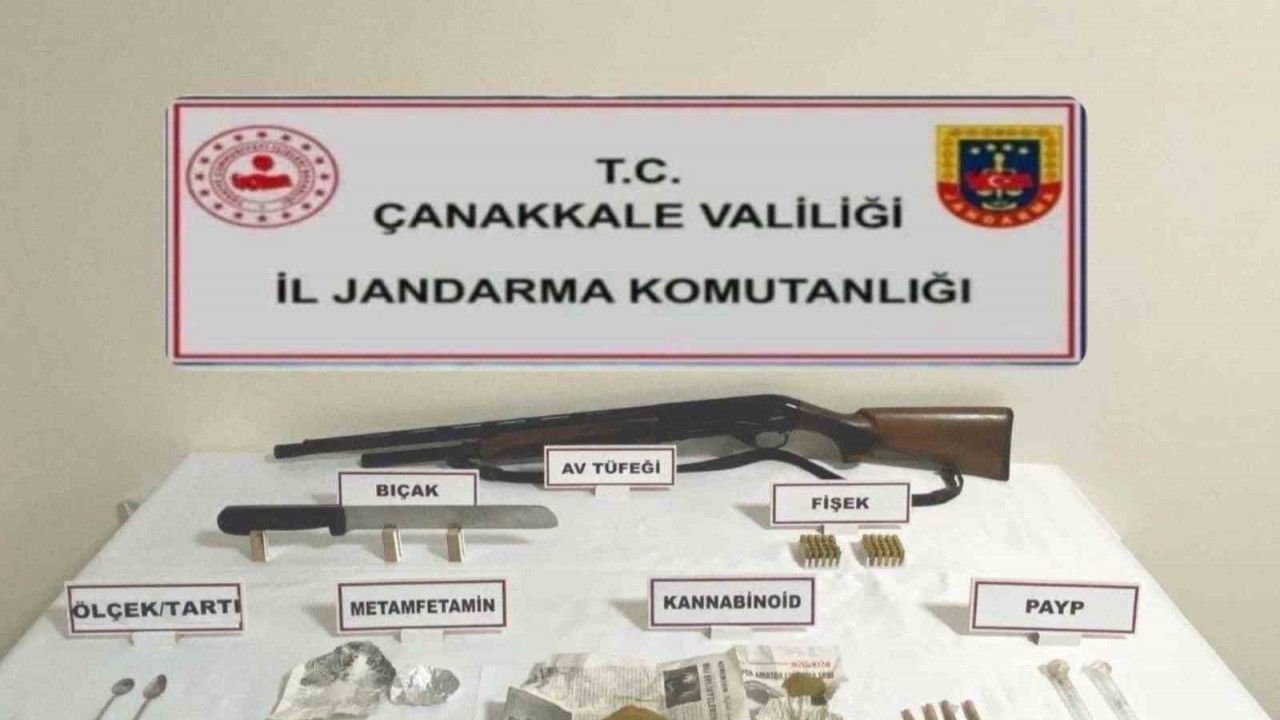 Çanakkale İl Jandarma Komutanlığınca uyuşturucu ve uyarıcı madde ile mücadele çerçevesinde, Çanakkale Cumhuriyet Başsavcılığı koordinesinde 07-10 Ekim tarihleri arasında Biga ve Ezine ilçelerinde 35 personel ile 3 operasyon gerçekleştirildi. Operasyonlar çerçevesinde uyuşturucu veya uyarıcı madde imal ve ticareti yaptıkları ve kullandıkları tespit edilen 13 şüpheliye ait 5 adres ile 5 araçta narkotik köpeğinin de katılımıyla arama yapıldı. Aramalar sonucunda 53 gram sentetik kannabinoid, 5 adet satışa hazır fişeklenmiş sentetik kannabinoid, 41 gram metamfetamin, 2 adet ölçü aparatı kaşık, ruhsatsız av tüfeği, 52 adet 7.65 milimetrelik çaplı tabanca fişeği, pala bıçak, uyuşturucu kullanma aparatlarından ise kova, bang ve 4 adet payp ele geçirildi.