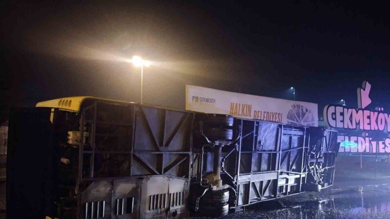 Olay 05.30 sıralarında Çekmeköy Merkez Mahallesi Şile Otobanı yan yol Ümraniye istikametinde meydana geldi. Edinilen bilgiye göre seyir halindeki 34 HO 2867 plakalı özel halk otobüsü yağmur nedeniyle kayganlaşan yolda şoförünün kontrolünden çıkıp bariyerleri aşarak yan yola devrildi. Kazada her hangi bir yaralanma olayı yaşanmazken olay yerine polis itfaiye ve sağlık ekipleri sevk edildi. Ekipler tarafından Şile Otobanı yan yol Ümraniye istikametini bir süre trafiğe kapatıldı. Şoför tedbir amaçlı olarak hastaneye kaldırıldı.