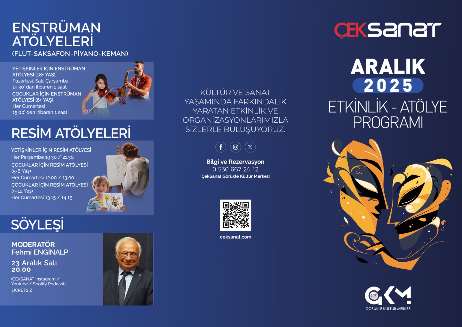 ÇEKSanat’ın çocuk, genç ve yetişkinlere yönelik atölye programları ekim ayında başladı. Tango, zeybek, resim ve çeşitli enstrüman eğitimlerinin yer aldığı atölyeler, uzman eğitmenler eşliğinde sezon boyunca Görükle Kültür Merkezi’nde devam edecek.