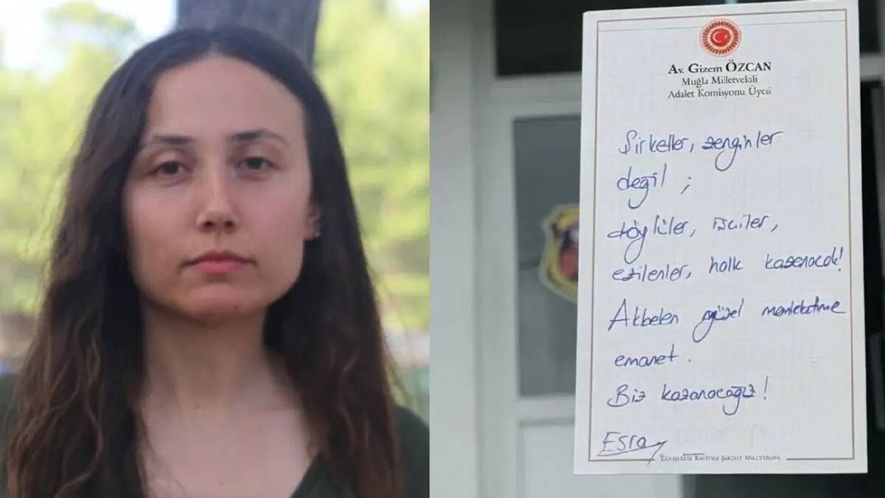 Akbelen’deki çevre mücadelesi nedeniyle tutuklanan Esra Işık, cezaevinden gönderdiği mesajla kamuoyuna seslendi. CHP Muğla milletvekilleri aracılığıyla paylaşılan mesajında Işık, mücadelenin yalnızca bir bölgeye değil, tüm topluma ait olduğunu vurgulayarak, “Şirketler ve zenginler değil; köylüler, işçiler ve halk kazanacak” ifadelerini kullandı.