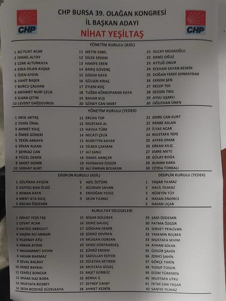 İŞTE NİHAT YEŞİLTAŞ'IN YÖNETİM LİSTESİ: