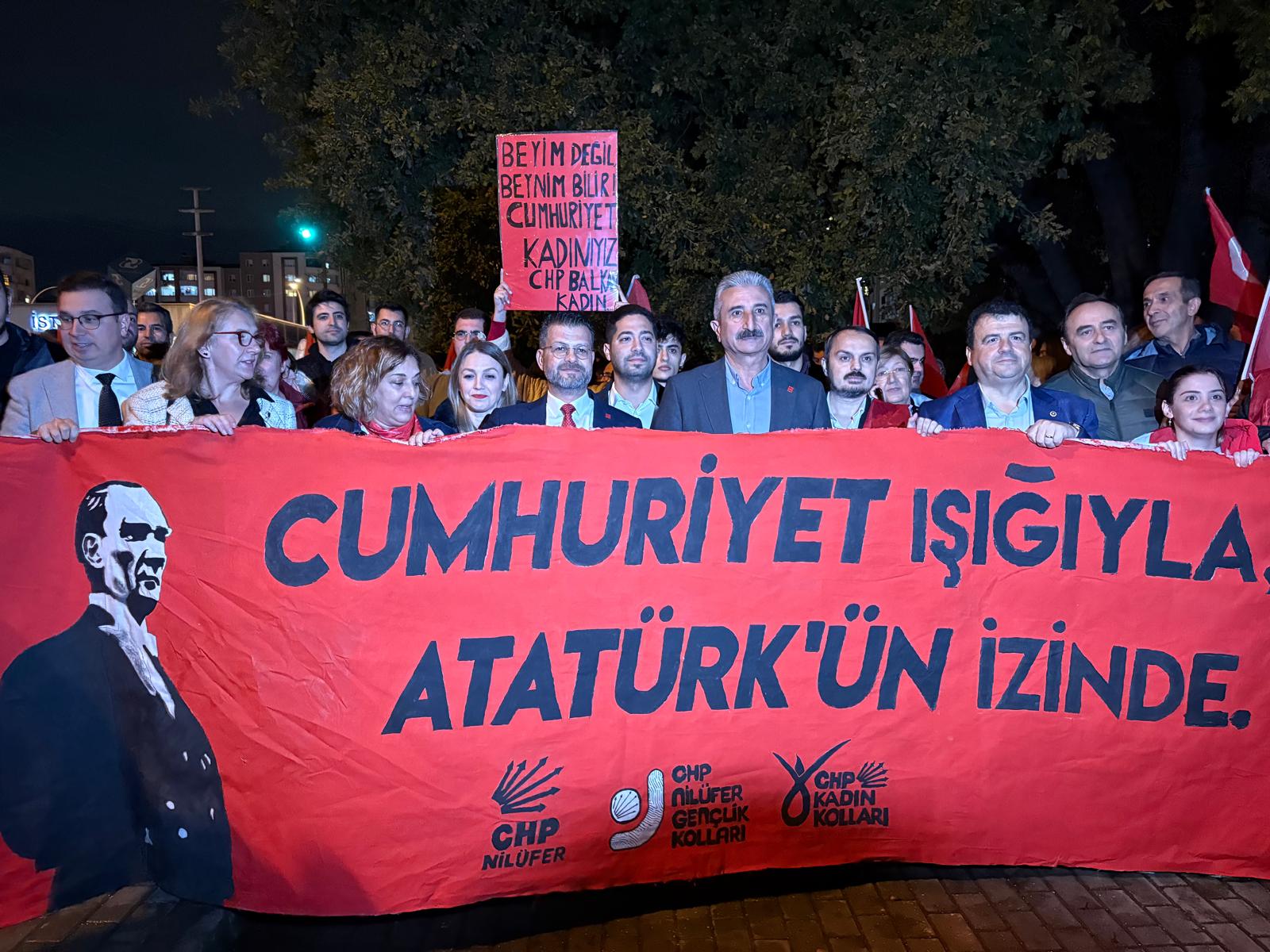 Bursa’da 102. yıl coşkusu sürerken, CHP Nilüfer İlçe Başkanlığı öncülüğünde düzenlenen yürüyüş, Yüzüncüyıl Metro İstasyonu önünden başlayarak Özlüce Bulvarı’nda son buldu.
