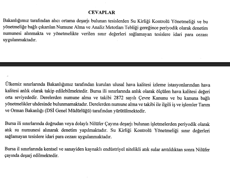 Prof. Dr. Pala, Nilüfer Çayı’nda yaşanan kirliliğin çevre sağlığı üzerindeki yıkıcı etkisinin yanı sıra ciddi bir halk sağlığı tehdidine dönüştüğünü vurguladı: “2023 yılında yayımlanan bir çalışmada Nilüfer Çayı’nda kanserojen etkisi bilinen polisiklik aromatik hidrokarbon (PAH) düzeyinin sınır eşiğinin çok üzerine çıktığı gösterilmiştir. Çayın doğduğu Keles’teki ölçümlerle karşılaştırıldığında sudaki PAH konsantrasyonu Hasanağa’ya kadar 51, Geçit’e kadar 94 ve Karacabey’e kadar 100 kat artmaktadır. Bu vahim tablo karşısında Çevre ve Şehircilik Bakanı, geçtiğimiz yıl şubat ayında verdiğimiz soru önergesinde Nilüfer Çayı’nda PAH ve benzeri insan sağlığını ciddi biçimde tehdit eden maddelerin ne düzeyde saptandığına ilişkin soruların hiçbirini yanıtlayamamıştır.”