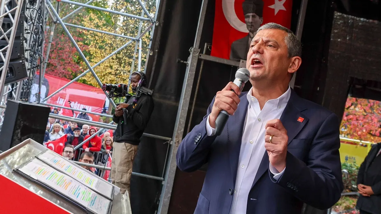 Özel, güçlü, demokratik, zengin bir ülke için çalıştıklarını ve mücadele ettiklerini dile getirerek, “Muhalefetteyken bile yurt dışındaki tüm temaslarımızda Kuzey Kıbrıs Türk Cumhuriyeti’nin, Filistin’in, Azerbaycan’ın çıkarlarını savunuyoruz. Bunu kimseden çekinmeden cesaretle yapıyoruz. Biz bunu icazetle değil, Gazi Mustafa Kemal’in partisinde olmanın verdiği cesaretle yapıyoruz. Siz çok yakından yaşıyorsunuz ki, Avrupa’dan bakınca Türkiye’de olanı, biteni anlamak çok kolay değil. Türkiye’de 23 yıllık bir AK Parti iktidarı var. 23 yıl sonra ilk kez seçim kaybetti. Biz 47 yıl aradan sonra ilk kez birinci parti olduk. Seçimde yüzde 38 oy aldık, belediyelerin yüzde 65’ini kazandık. Bugüne kadar ‘demokrasi’ diyen, demokrasiden dem vuran Erdoğan, demokrasi treninden o istasyonda indi. O günden bugüne artık sandıktan değil, başka yerlerden medet umduğu için Türkiye’de demokrasiyi askıya almaya çalışıyor. Halkın tercihine saygı duymadı. Önce belediye başkanlarımızı bakanlarına ‘Bunları silkeleyin’ diyerek, gelen paraları keserek, geçmişten birikmişleri CHP’li belediyelerden bir seferde tahsil ederek hizmeti aksatmaya çalıştı. Baktı bu yeterli olmuyor, bu sefer Cumhurbaşkanı adayımızın diplomasını 31 yıl sonra iptal etti” diye konuştu.