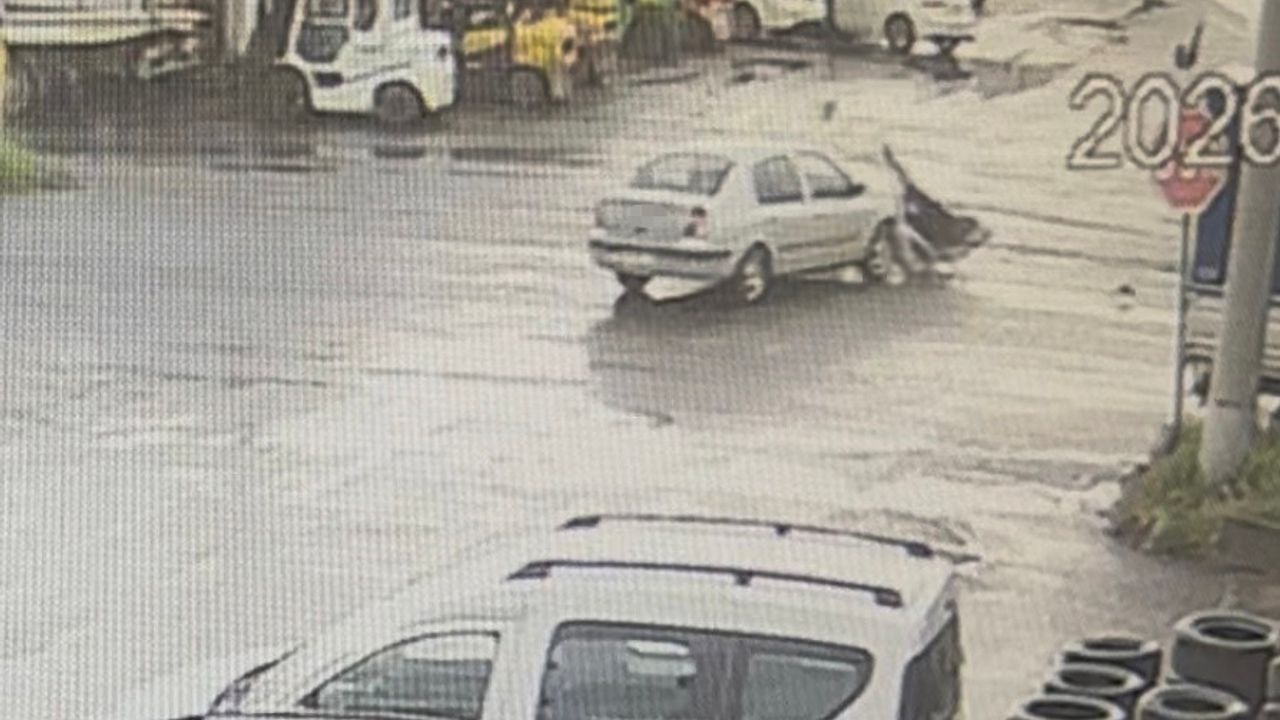 Tekirdağ'ın Çorlu ilçesinde otomobille çarpışan motosiklet sürücüsü yaralandı, kaza anı kameraya yansıdı.