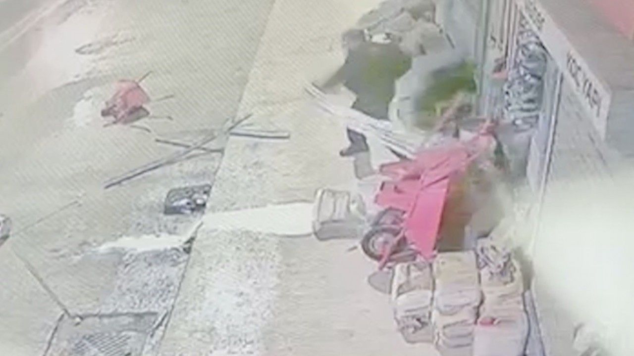 Öte yandan, olay anı ise saniye saniye güvenlik kamerasına yansıdı. Görüntülerde bir kişinin caddede yürüdükten sonra bir iş yerinin önüne geldiği görülüyor. Şahıs iş yerinin önünde bulunan malzemeleri tek tek alarak yola fırlatıyor. Şahıs diğer dükkanların önündeki eşyalara da zarar vererek bölgeden uzaklaşıyor.