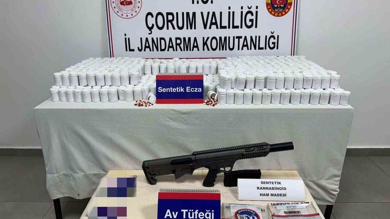 Edinilen bilgiye göre, Çorum İl Jandarma Komutanlığı ekipleri tarafından uyuşturucuyla mücadele kapsamında il merkezinde bulunan bir iş yeri ile Merkez ilçeye bağlı bir köyde bulunan bağ evinde arama yapıldı. Aramalarda 40 bin 517 adet sentetik ecza hapı, 33 gram sentetik kannabinoid ham maddesi, 1 adet ruhsatsız av tüfeği ve 1 adet av tüfeği şarjörü ele geçirildi.