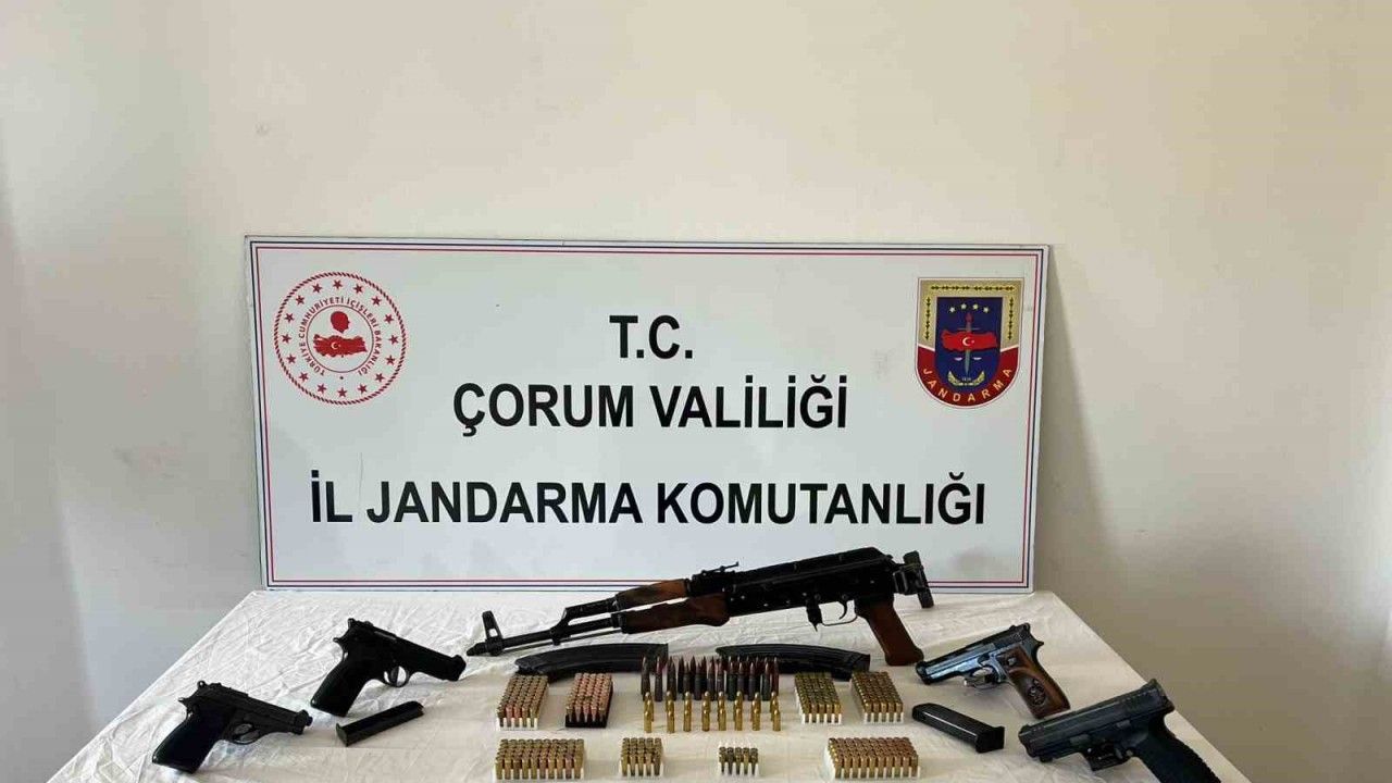 Çorum’un Alaca ilçesinde jandarma ekiplerince düzenlenen operasyonda, 1 adet kalaşnikof tüfek, 4 tabanca ve yüzlerce mermi ele geçirildi. Olayla ilgili 1 kişi tutuklandı.