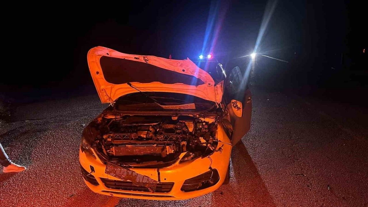 Çorum’un Alaca ilçesinde yola çıkan danaya çarpan otomobildeki 2 kişi yaralandı.