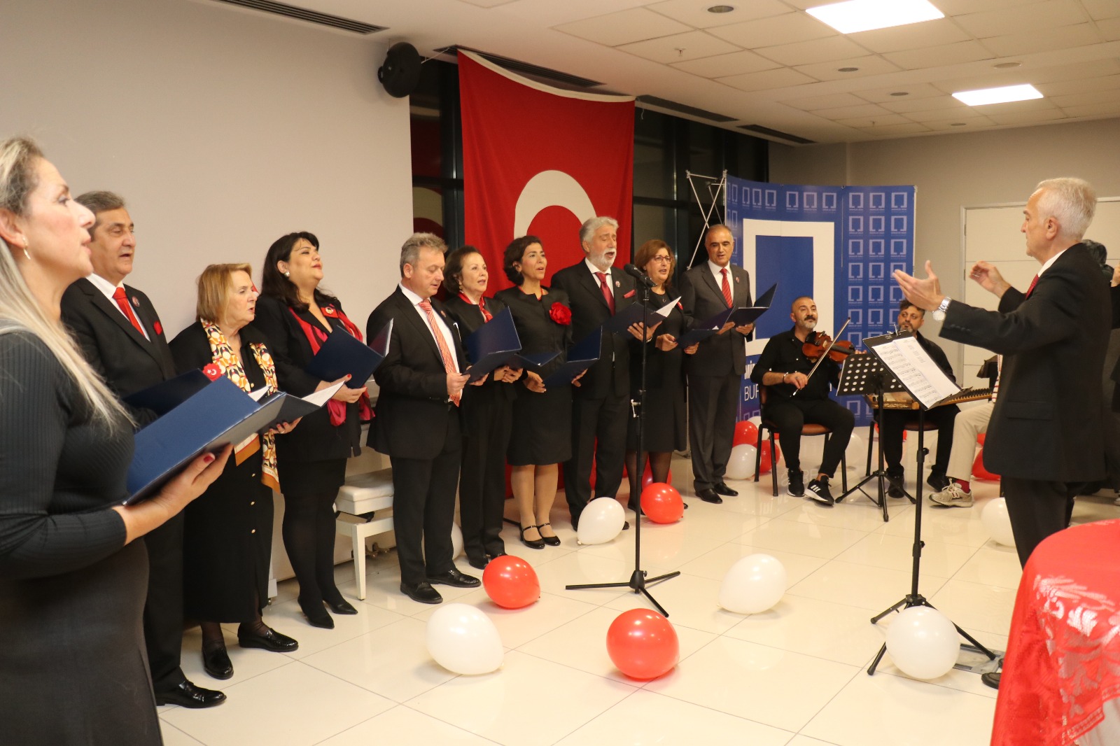 Açılış konuşmanın ardından başlayan etkinlikte, oda üyelerinden oluşan Türk Sanat Müziği korosu sahne aldı. Atatürk’ün sevdiği şarkıların seslendirildiği bölümde davetliler ellerinde Türk bayraklarıyla koroya eşlik etti.