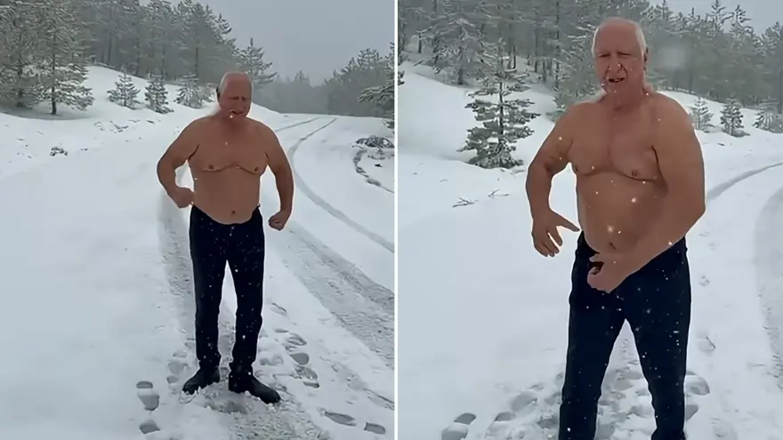 Deprem Uzmanı Prof. Dr. Şener Üşümezsoy, Kütahya'nın Gediz ilçesinde yer alan karla kaplı Murat Dağı'nda üstü çıplak bir şekilde video çekti.