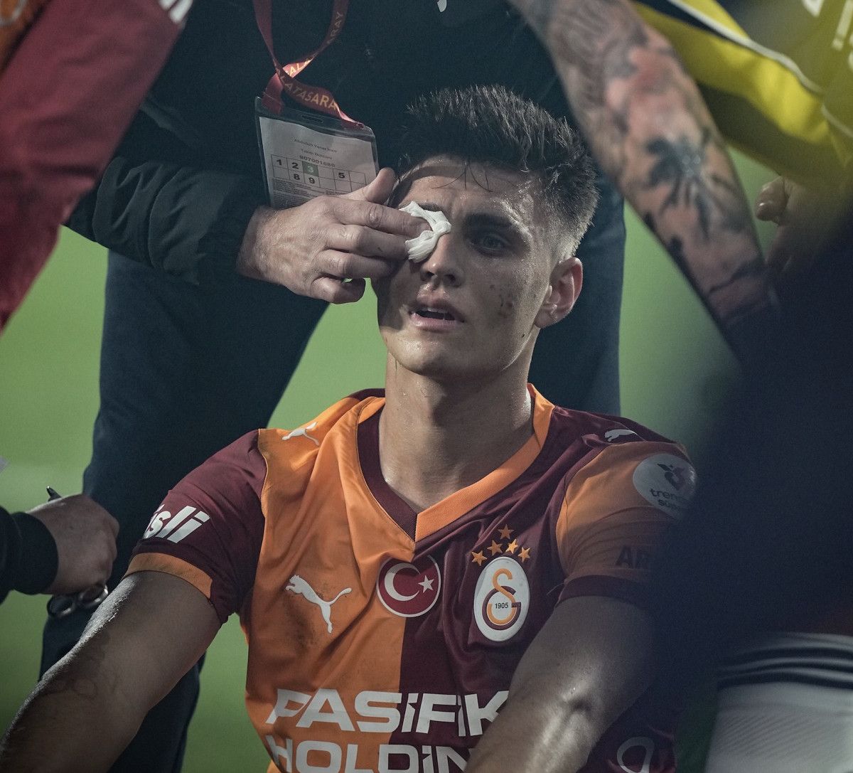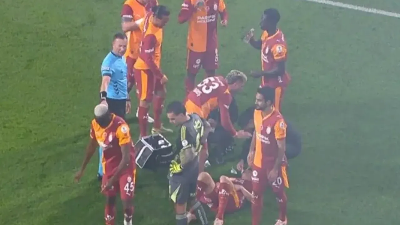 Ağlara giden top sonrası gol sevinci için Chobani Stadyumu'nda taraftarlarının bulunduğu bölüme giden sarı-kırmızı futbolculardan Kazımcan Karataş, tribünden sahaya atılan yabancı madde sonrası yerde kaldı. Gözünün hemen altından yaralanan Kazımcan Karataş'a ilk müdahale saha içinde yapıldı. Yerden bir süre kalkamayan Kazımcan Karataş'ın gözünün altına sağlık ekibi tarafından bandaj uygulandı.