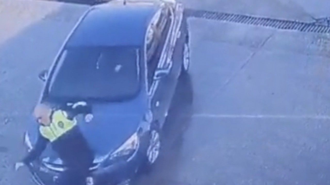Samsun’un Çarşamba ilçesinde dikkatsiz bir sürücünün akaryakıt istasyonunda yürüyen trafik polisine çarpma anı güvenlik kamerasına yansıdı.