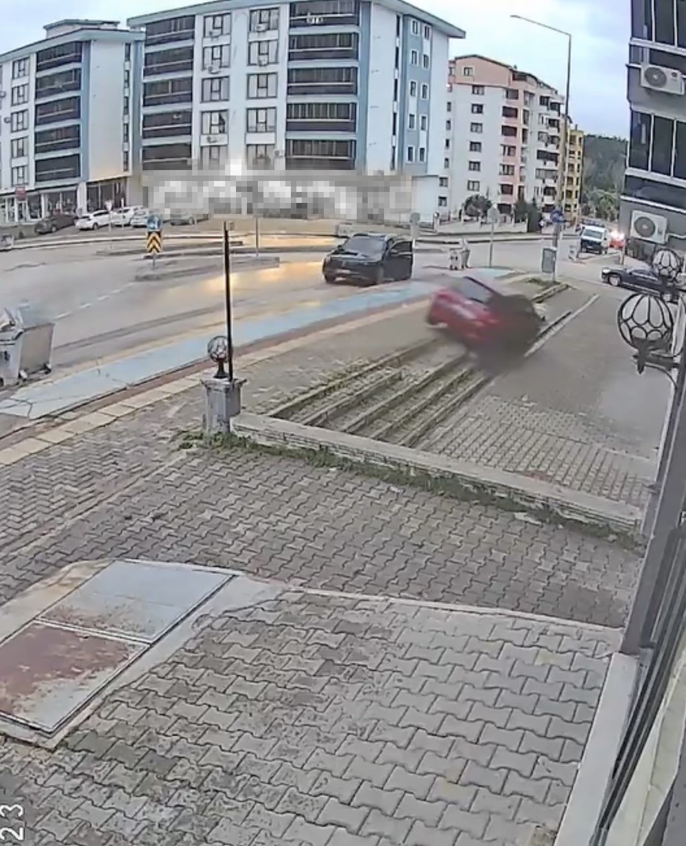 Olay yerine gelen ekipler çevrede güvenlik önlemi alarak, araç bulunduğu yerden çıkarıldı. Kaza anı ise, bir iş yerinin güvenlik kamerası tarafından saniye saniye kaydedildi.