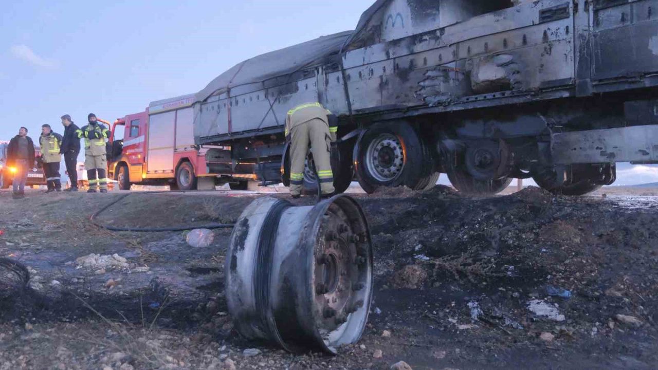 Olay anını anlatan sürücü Taner Gönül, 'Teker bilyesi bozulunca ısındı, lastik tutuştu ve ardından patladı. Köylü arkadaşlar sağ olsun, hepsi yardıma geldi. Ben de köylüyüm. Elimize ne geçtiyse; kürekle, suyla müdahale ettik. Köylülerin sayesinde yangını söndürdük. Ereğli'den Karaman'a inşaat malzemesi götürüyordum' dedi.