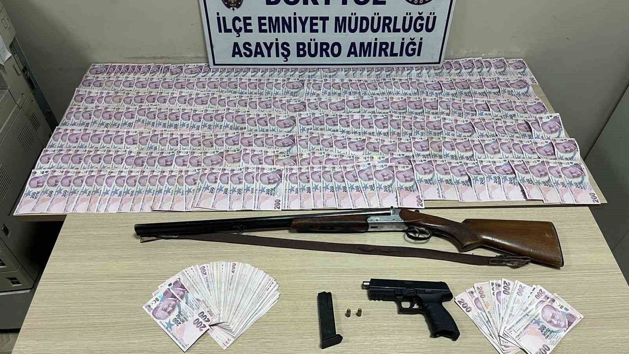 Şahsın ikametinde yapılan aramda; 1 adet ruhsatsız tabanca, 1 adet ruhsatsız tüfek, 2 adet fişek, 80 bin TL. para ele geçirildi. Gözaltına alınan G.A. sevk edildiği adli makamlarca tutuklandı.